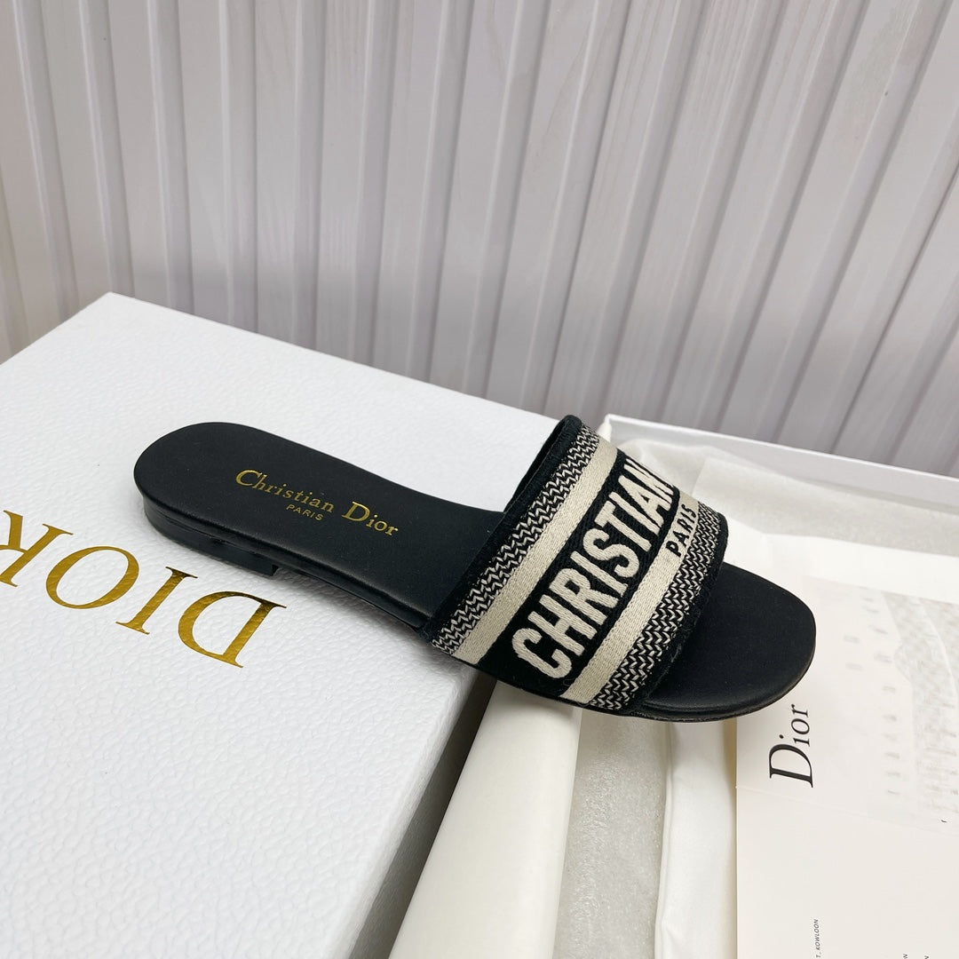 dway heeled slide 35 embroidered cotton black miss cd alllover motif