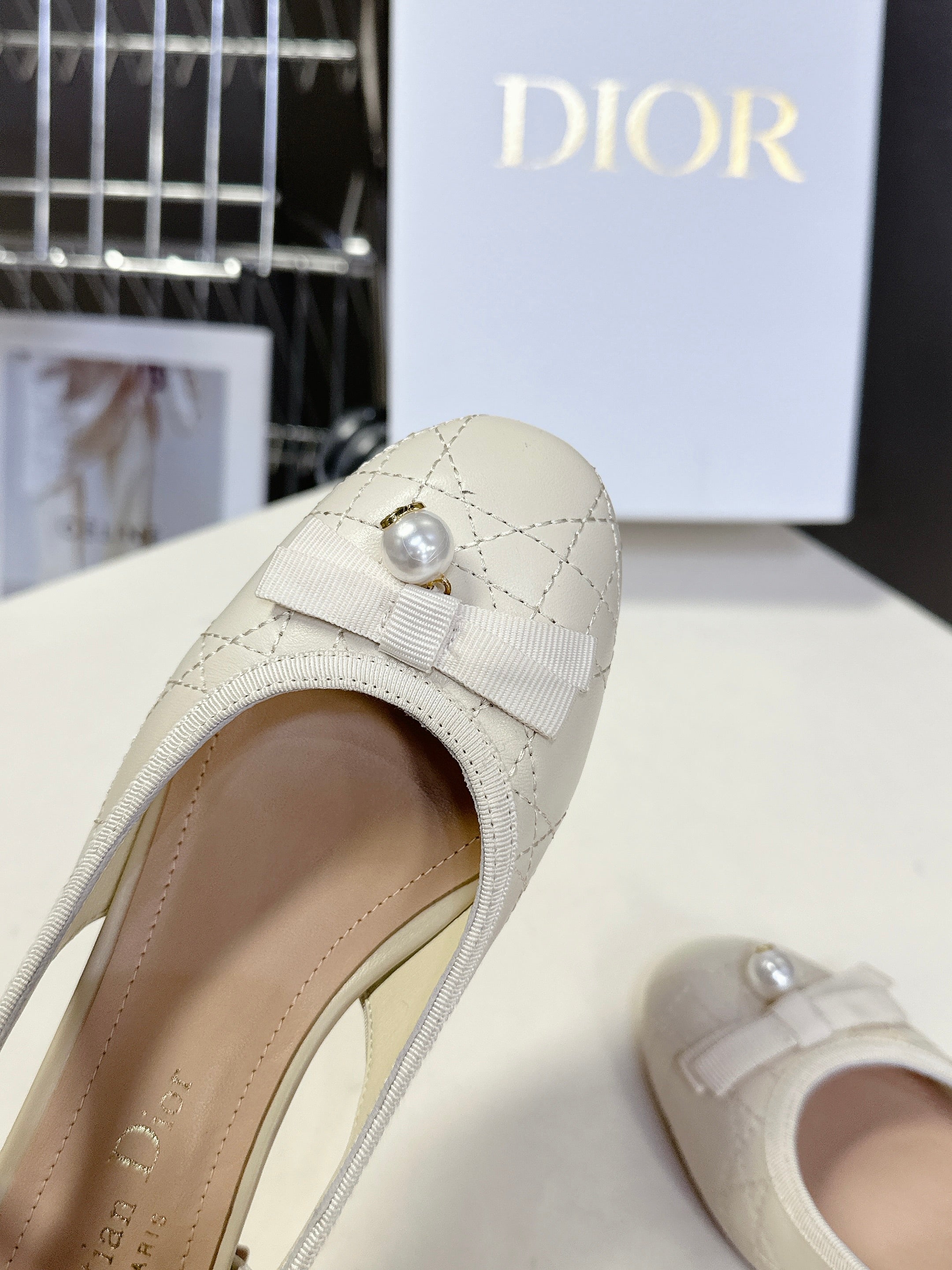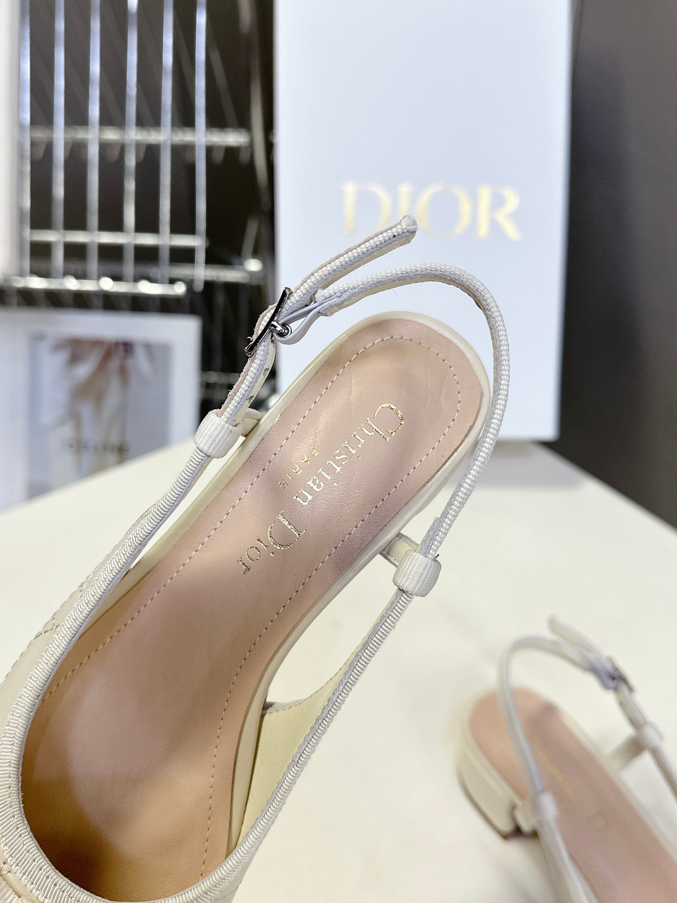 cd slingback pump 65 embroidered cotton white calfskin resin pearl