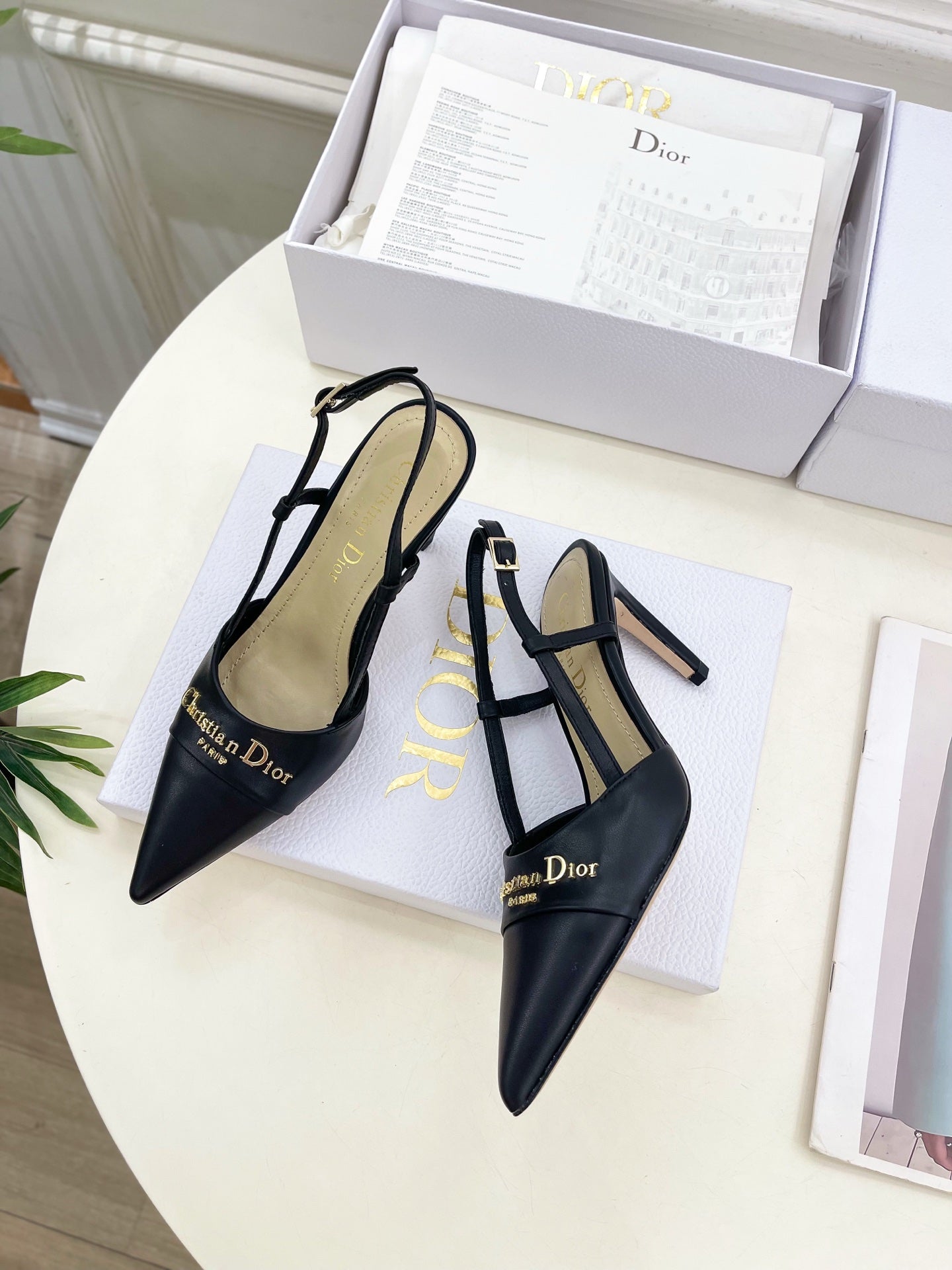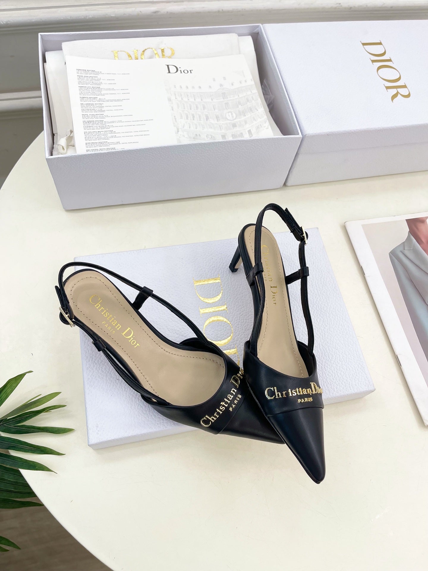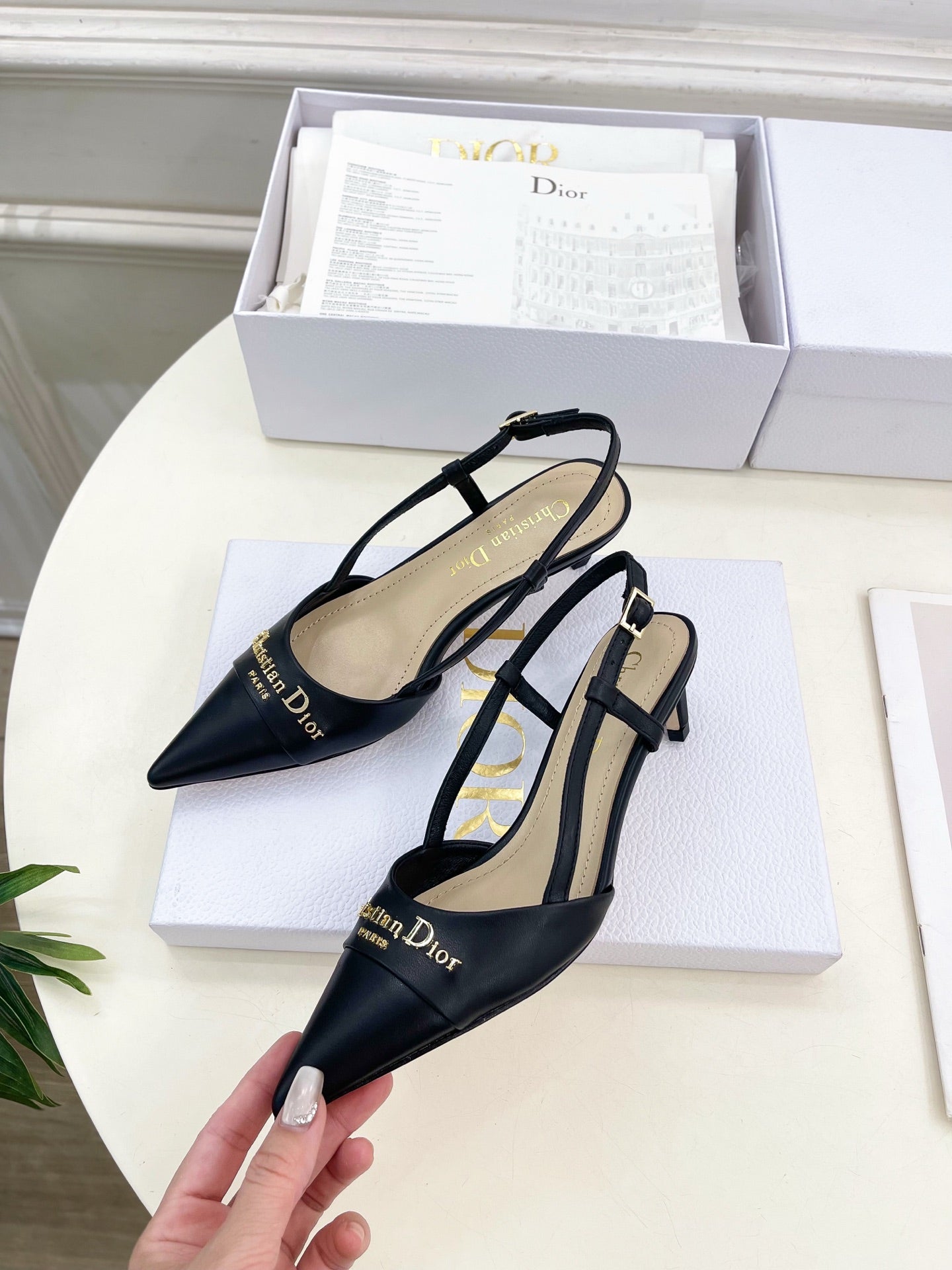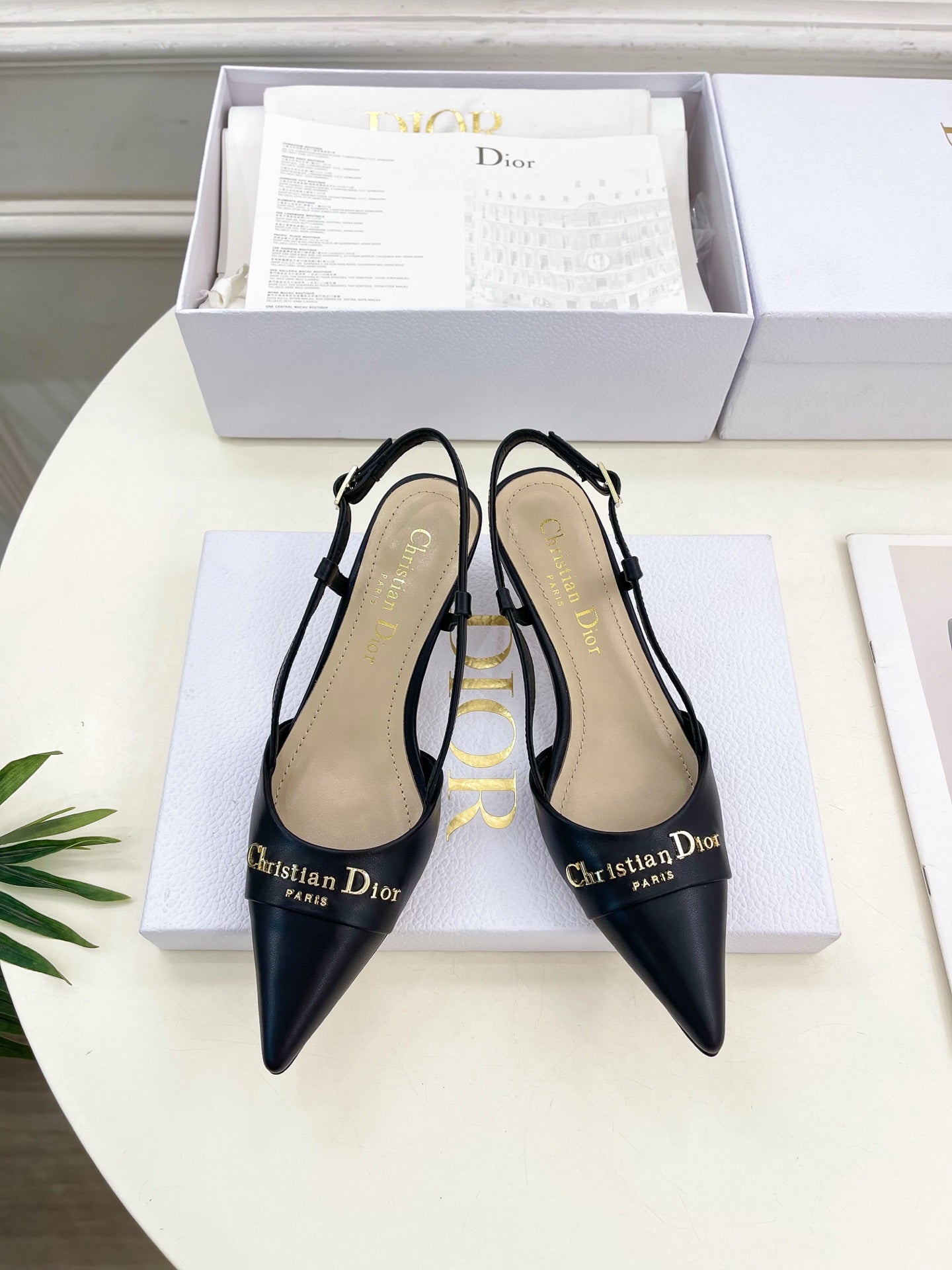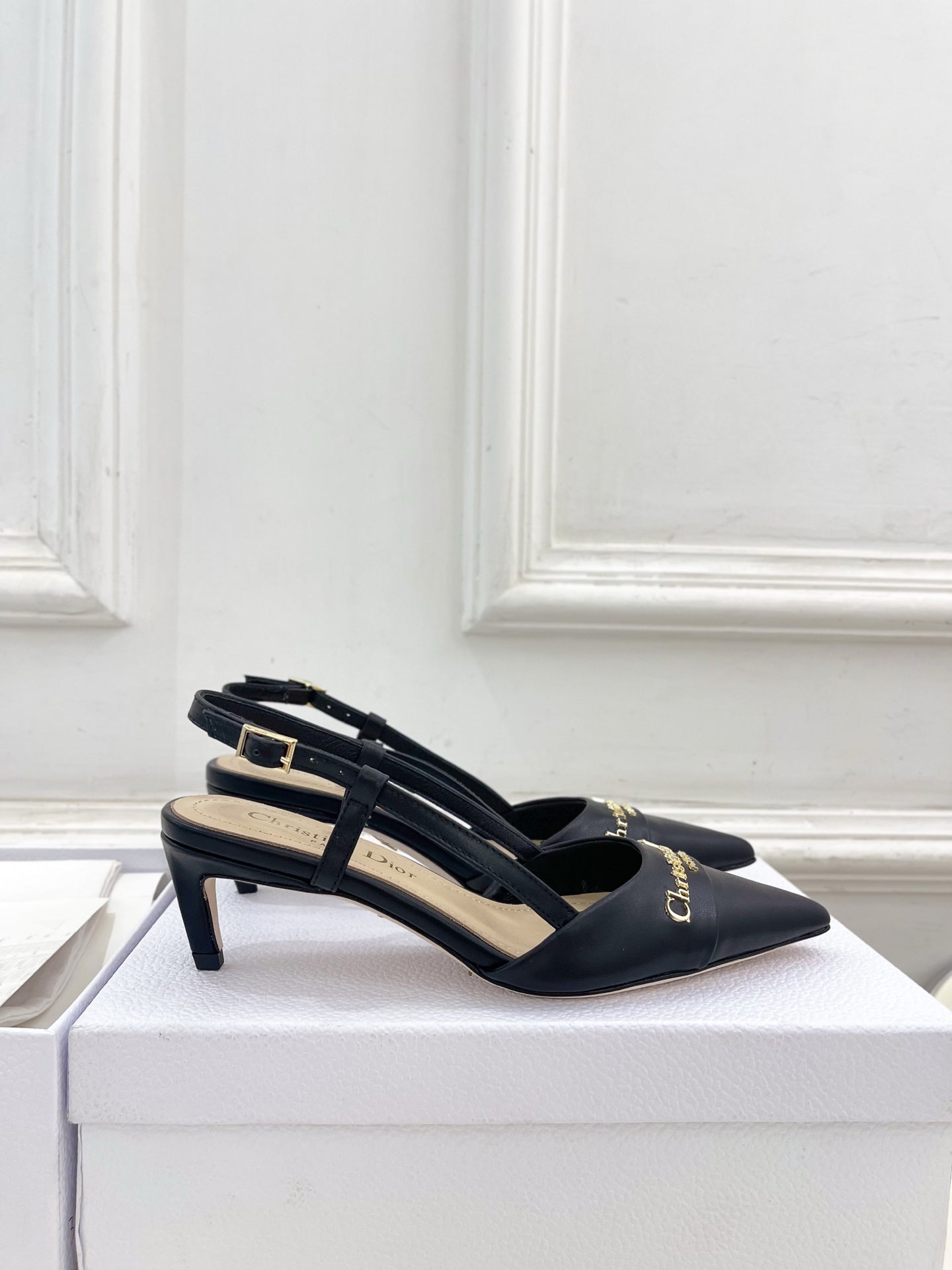 CD Slingback Pump Black Technical Fabric Beige Calfskin