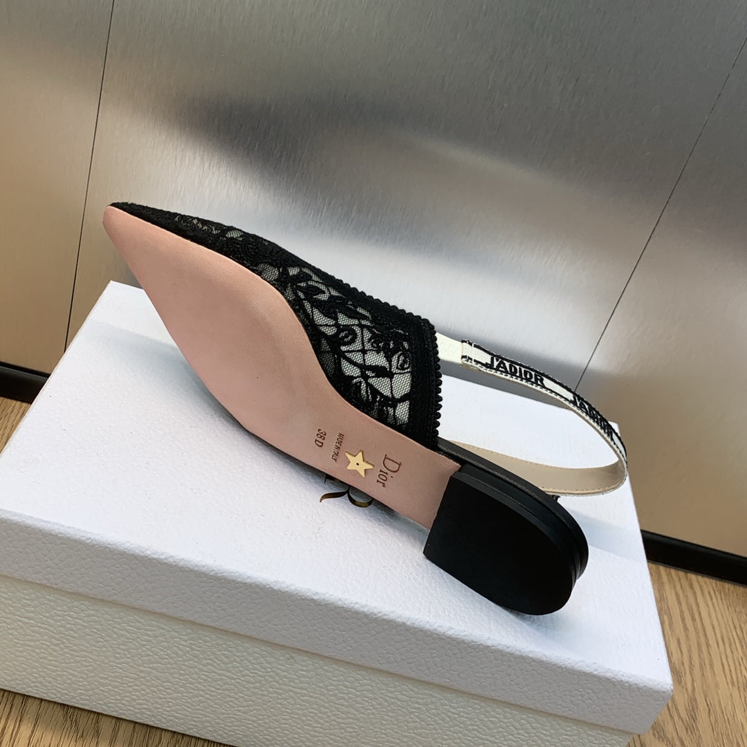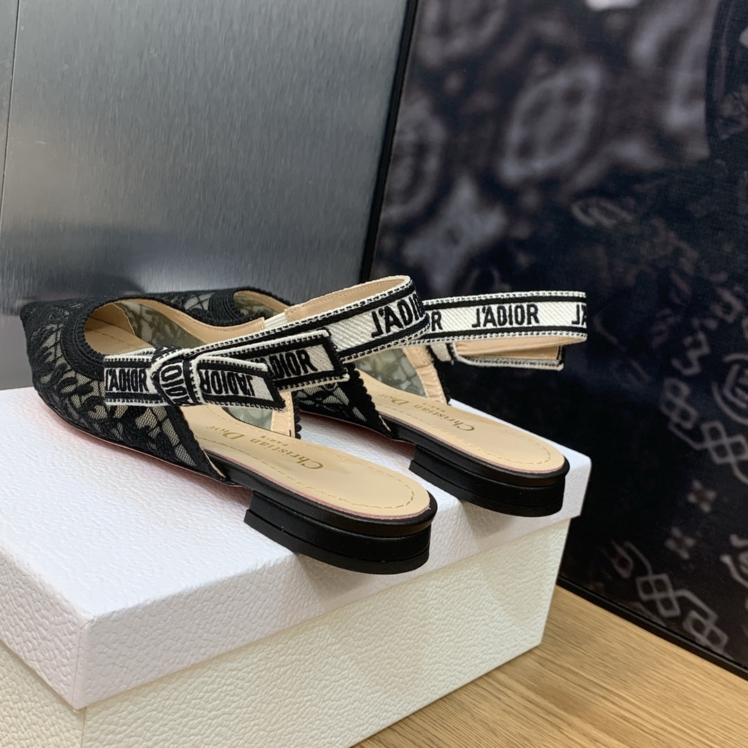 JAdior slingback flat full transparent mesh black embroidered cotton