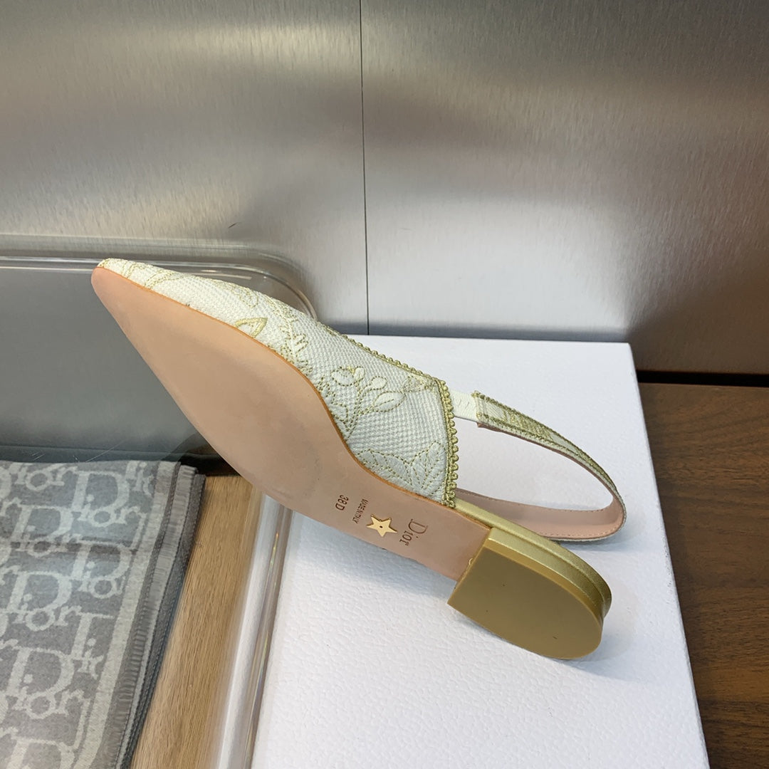 cd slingback flat embroidered cotton white calfskin resin pearl