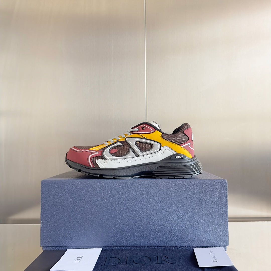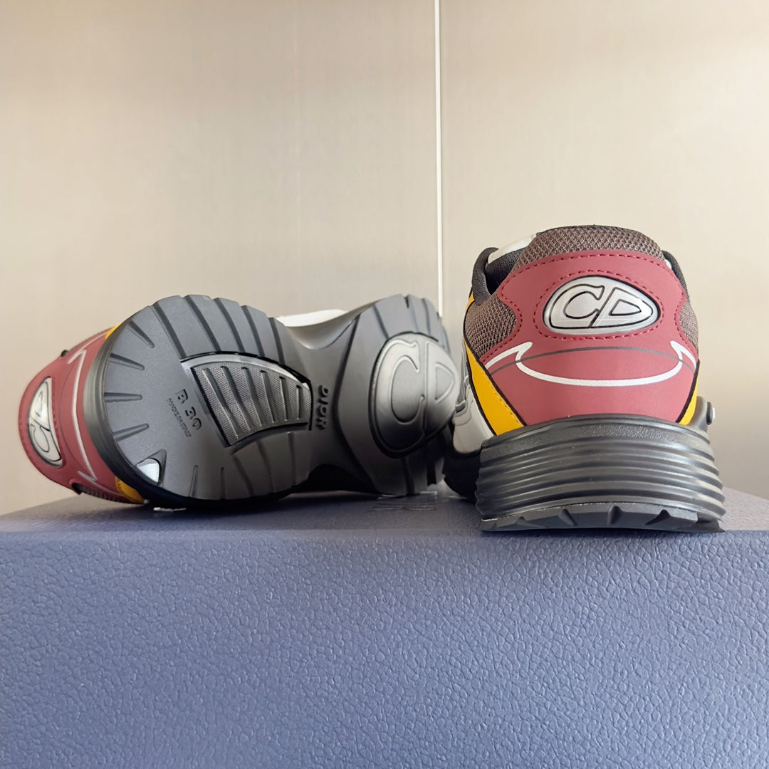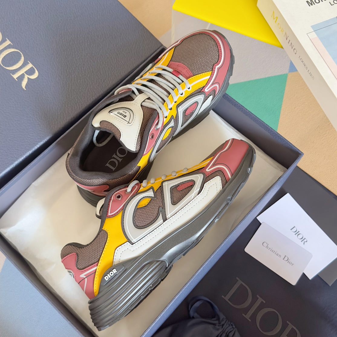 CD B30 Sneaker 35mm Brown Red Mix Yellow White Polyester Mesh Fabric And Calfskin