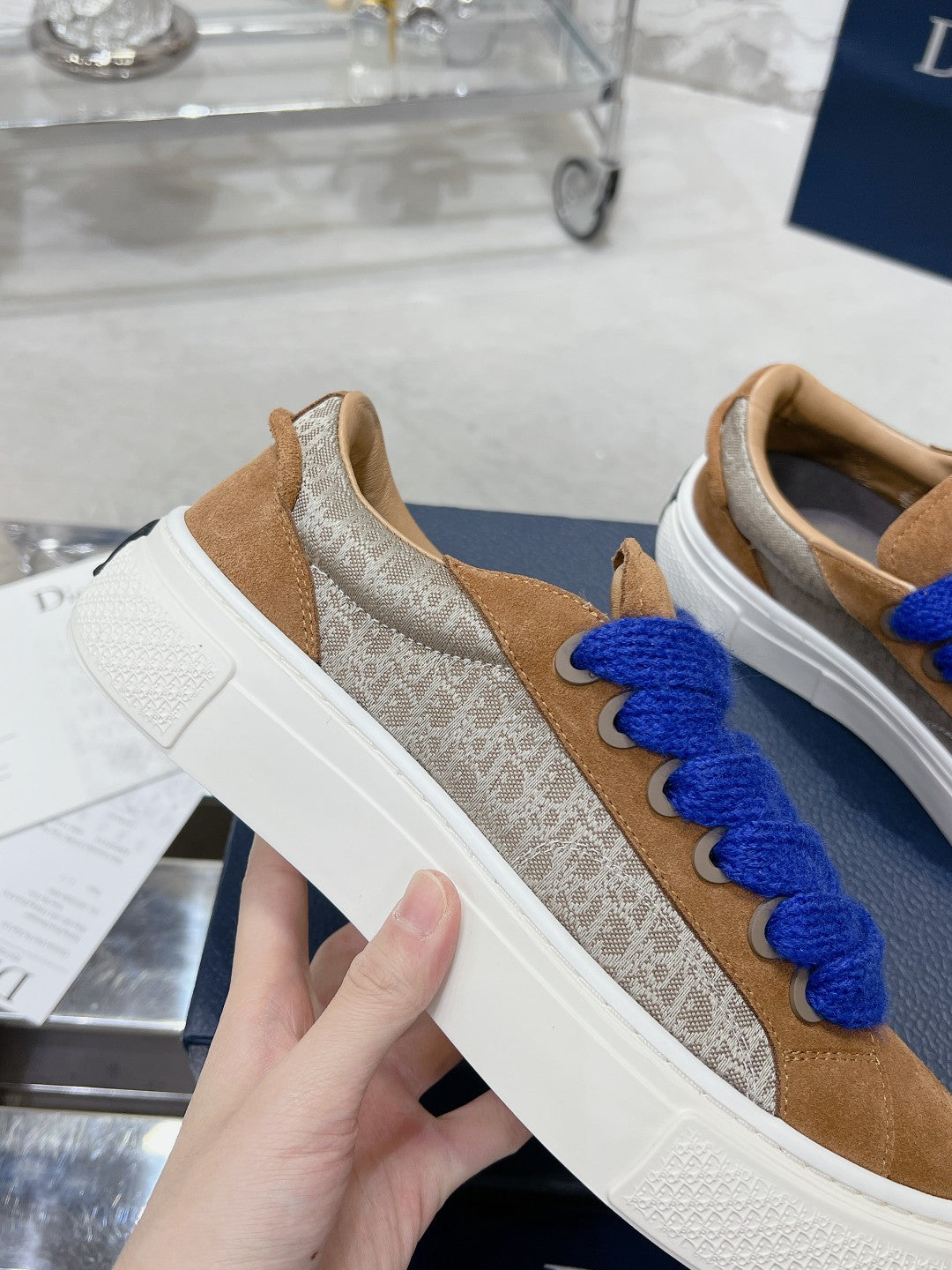 CD B33 Sneaker 40mm In King Blue Mix Brown Monogram Satin Embroidery Fabric 103992