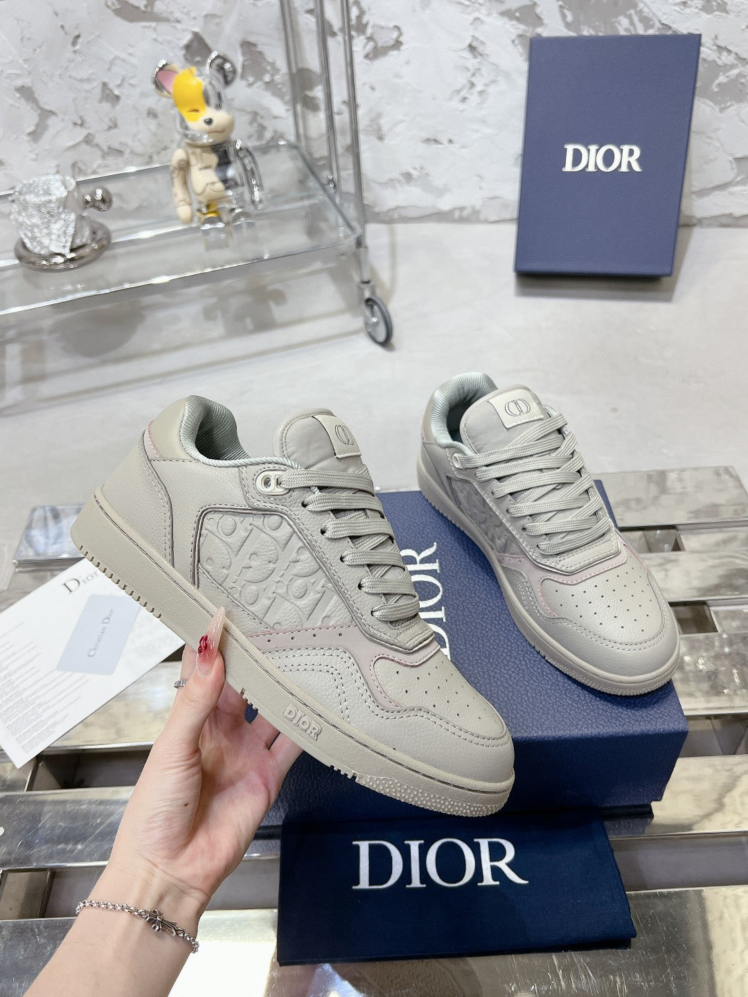 CD B27 Low-Top Sneaker 30mm In Beige Grey Monogram Calfskin 100811