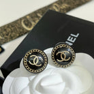 DOUBLE C BLACK ENAMEL STUD EARRINGS