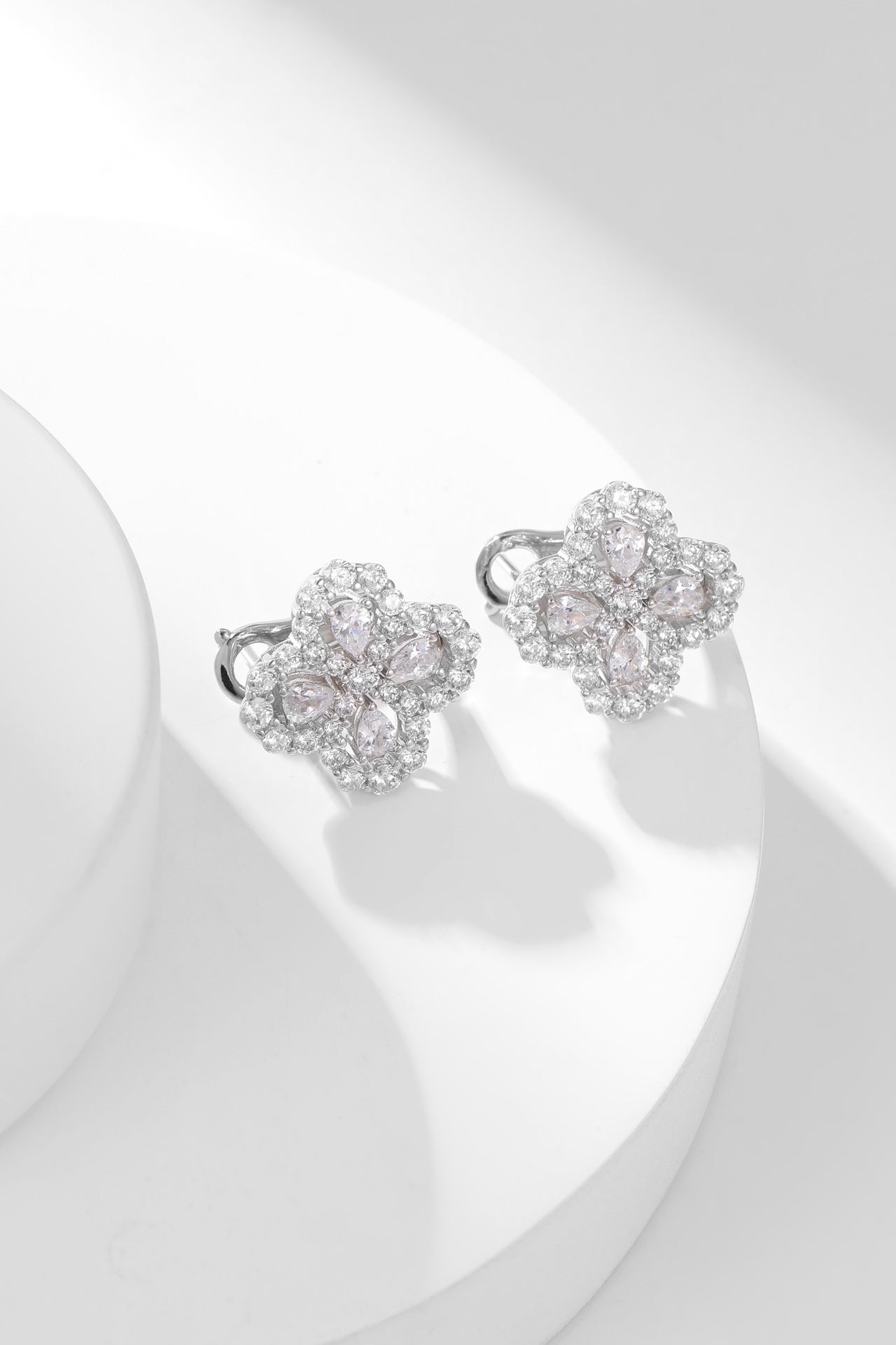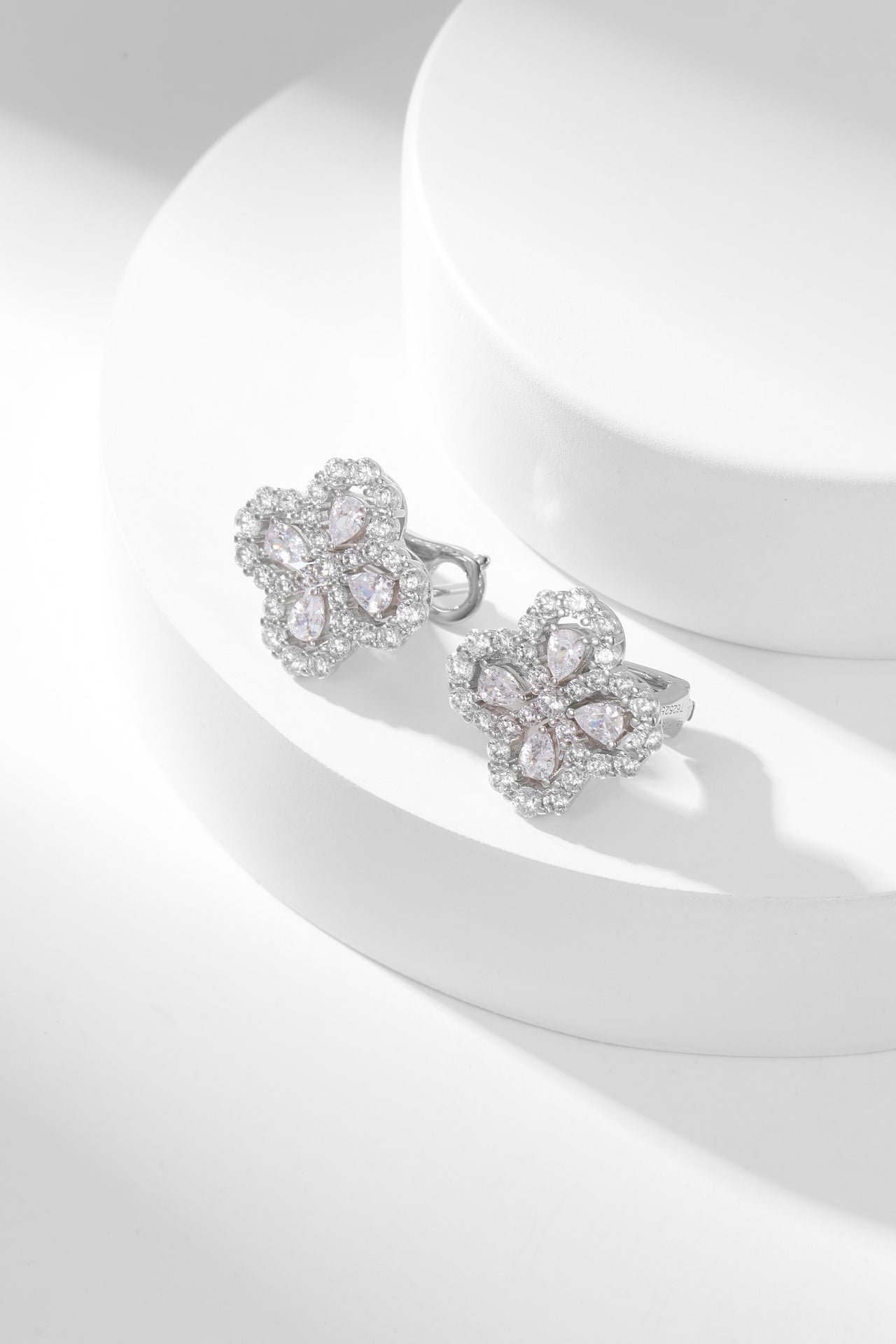 LOOP FULL DIAMOND MOTIF SILVER EARRINGS