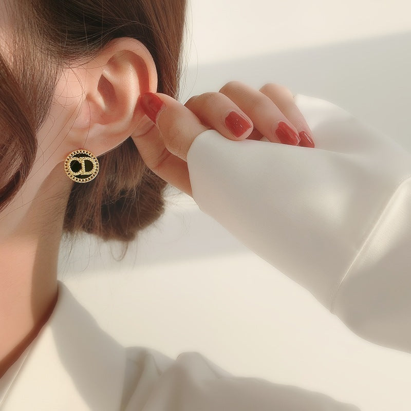 DOUBLE CIRCLE DIAMOND ONYX STUD EARRINGS