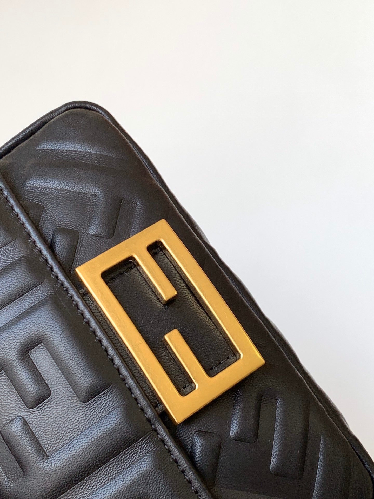 Mini Baguette Bag 20 With FF Motif Black Leather Ghw