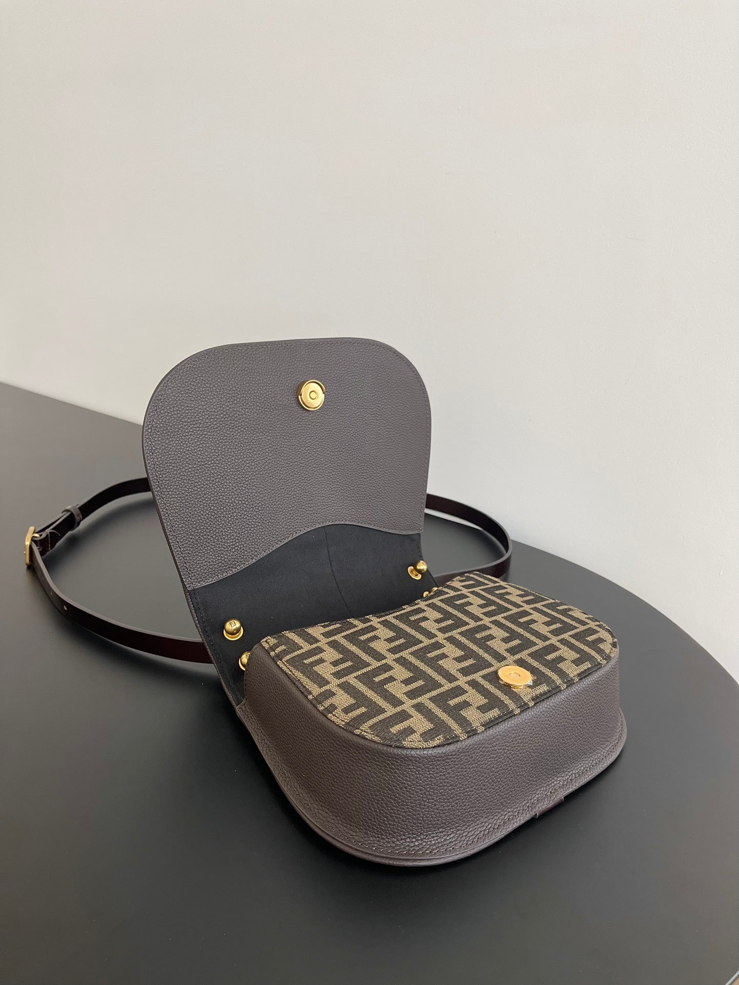 SHOULDER BAG 19 WITH FF MOTIF IN BROWN JACQUARD FABRIC