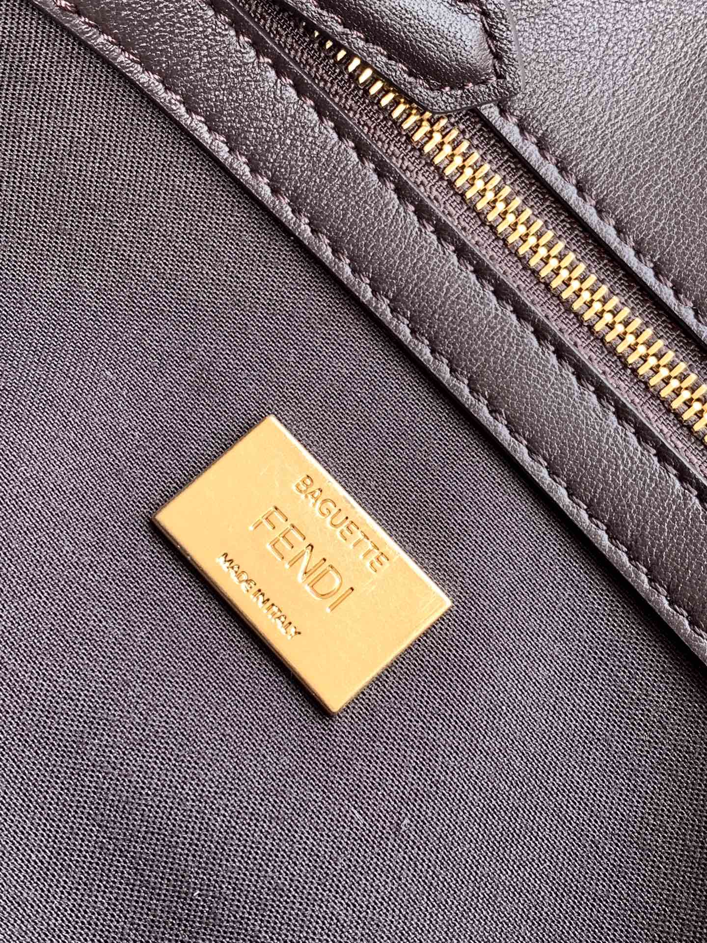 BAGUETTE WITH FF MOTIF 27 IN PINE CONE SOFT LAMBSKIN GOLD HARDWARE