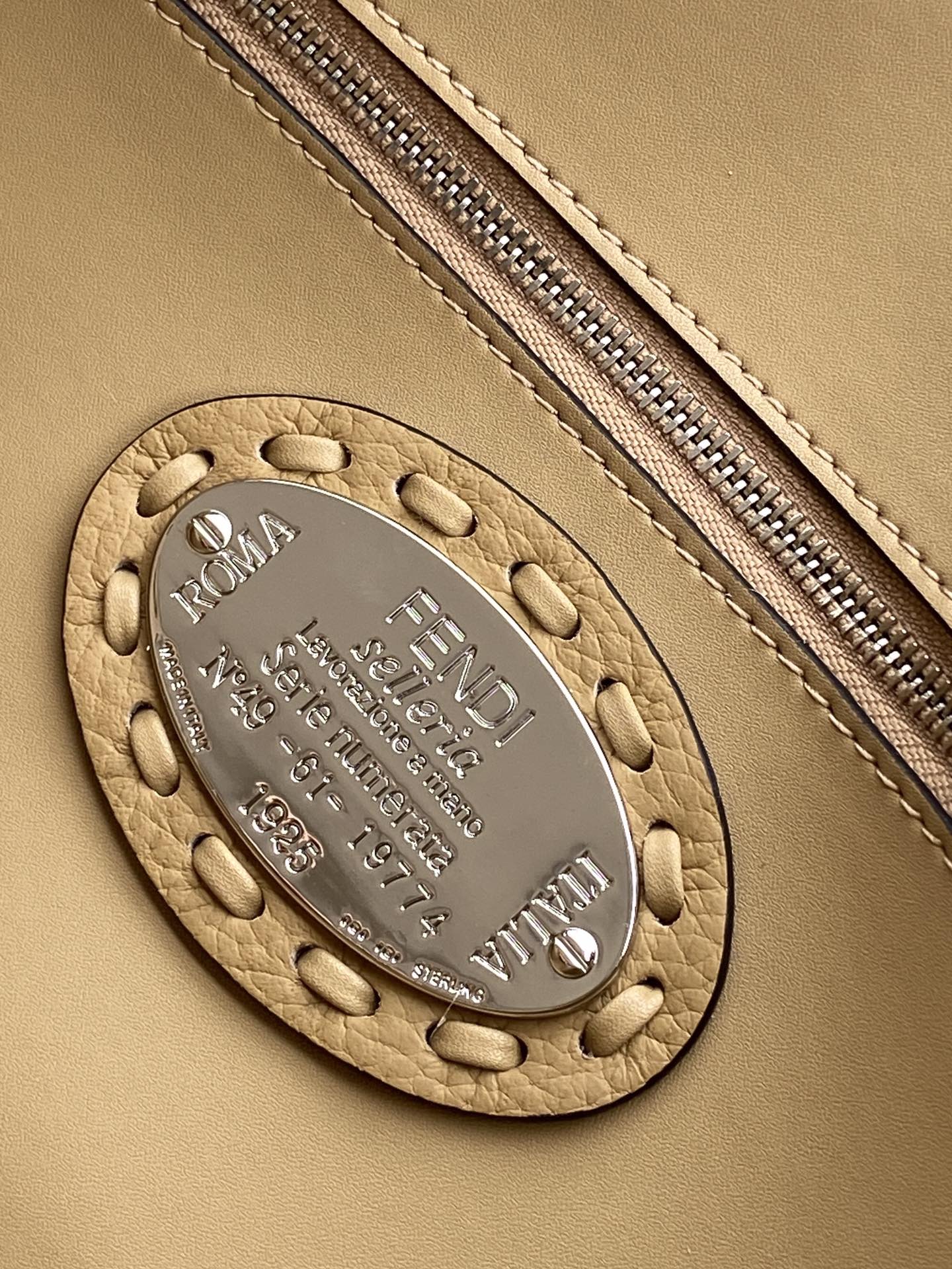 FENDI PEEKABOO 27 IN CAMEL BROWN CALFSKIN WITH GOLD HARDWARE