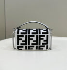 FENDI 19 BAGUETTE BAG IN BLACK MIX WHITE CANVAS WITH GOLD HARDWARE
