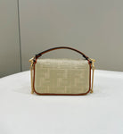 FENDI 19 BAGUETTE BAG IN FLAX YELLOW CANVAS WITH GOLD HARDWARE