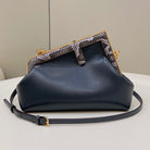 FENDI FIRST SMALL 26 BLACK LEATHER BAG WITH EXOTIC DETAILS