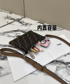 SHOULDER BAG 19 WITH FF MOTIF IN BROWN JACQUARD FABRIC