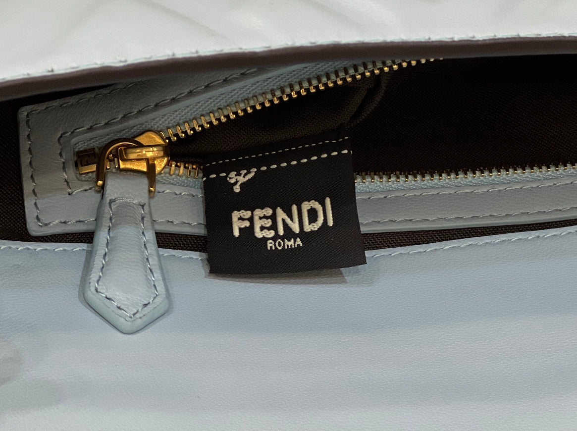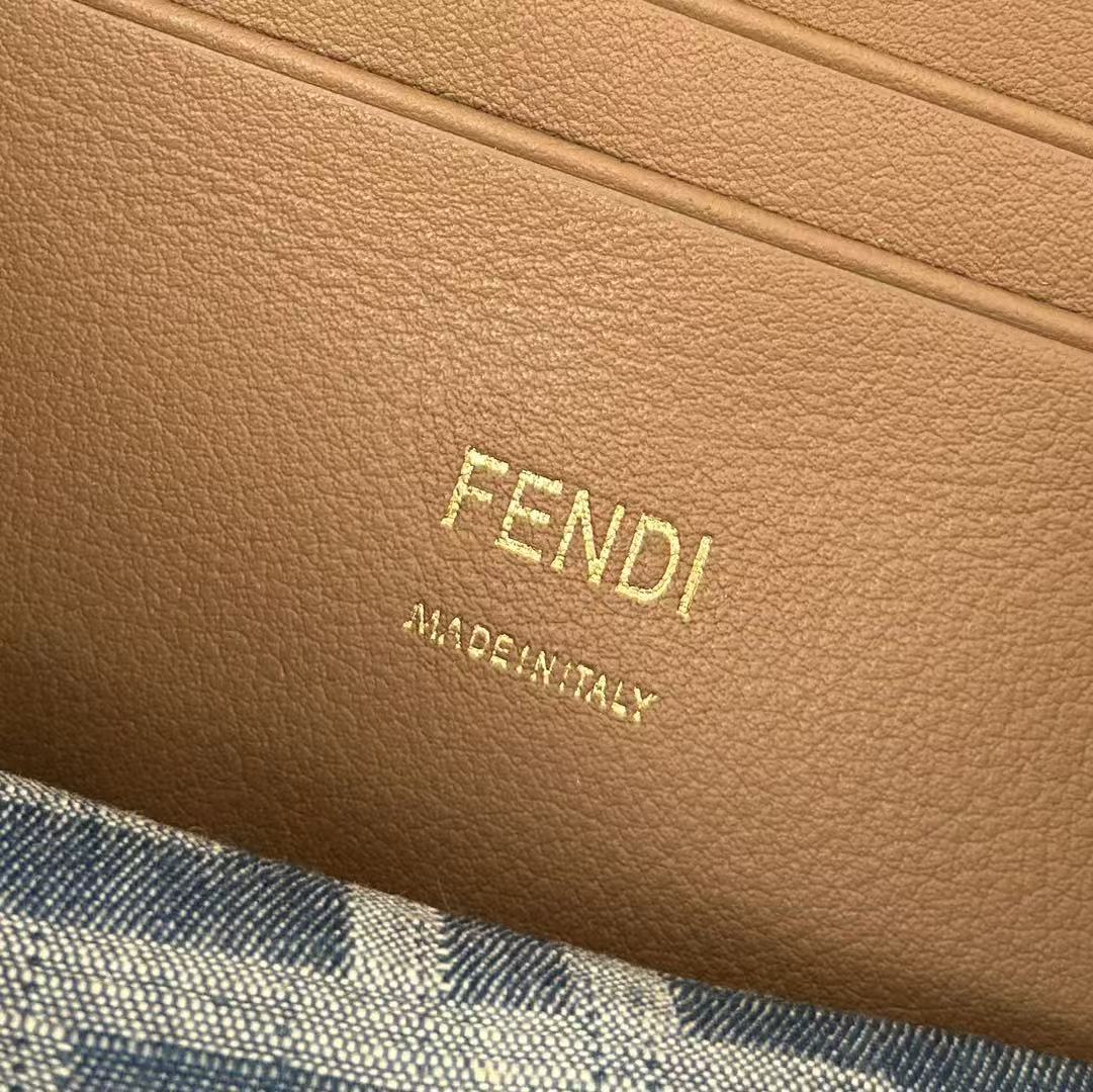 FENDI ORIGAMI MINI 19 IN TRUE BLUE MONOGRAM DENIM WITH CALFSKIN STRAP