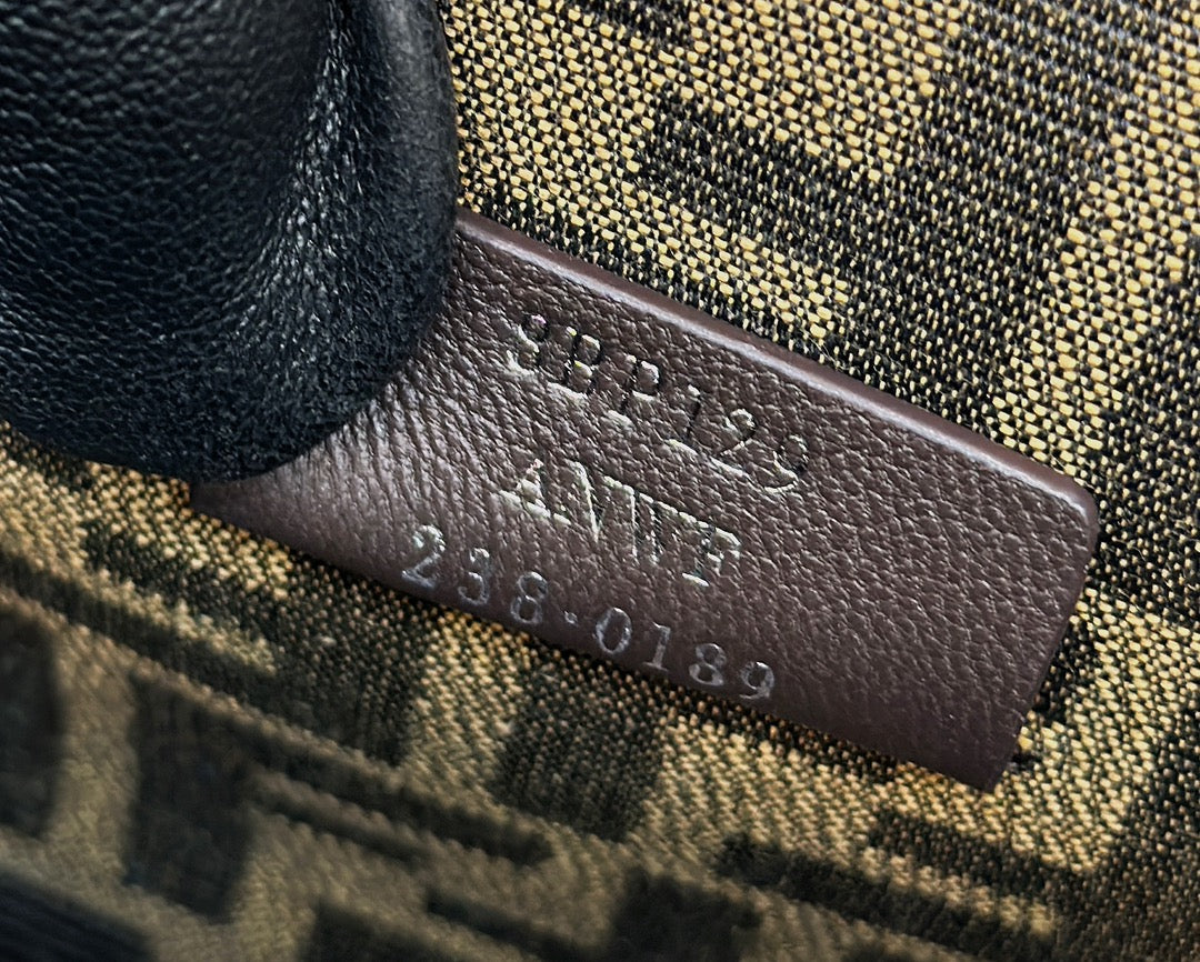 FENDI TOTE 41 BAG IN BROWN MIX BLACK MONOGRAM CANVAS GOLD HARDWARE