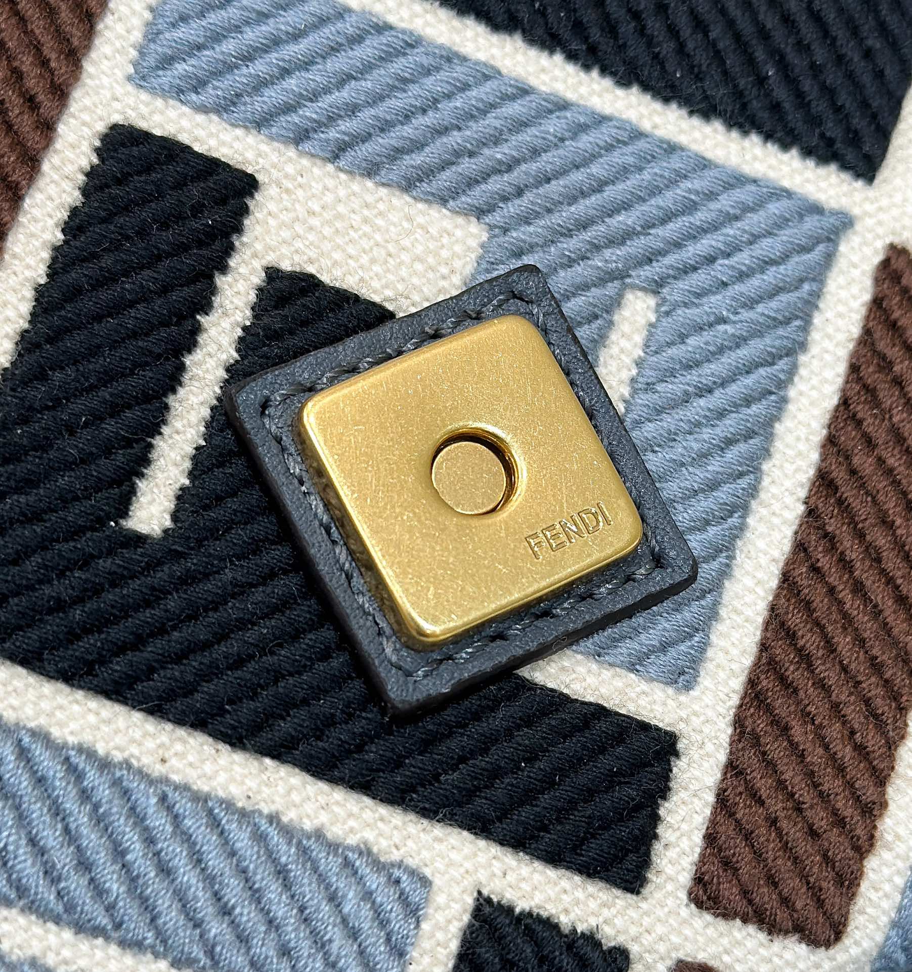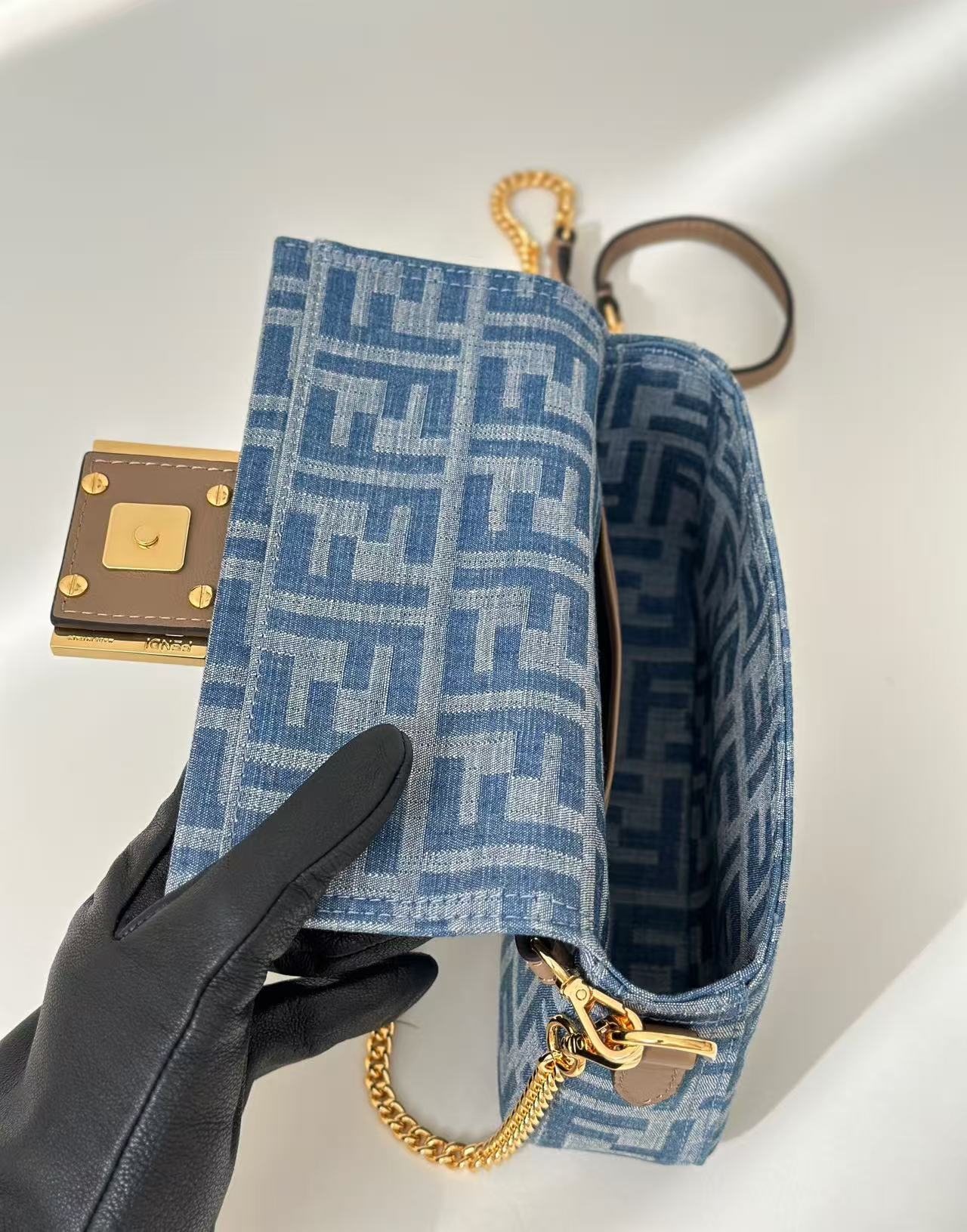 FENDI MEDIUM 27 BAG IN TRUE BLUE MONOGRAM DENIM GOLD HARDWARE