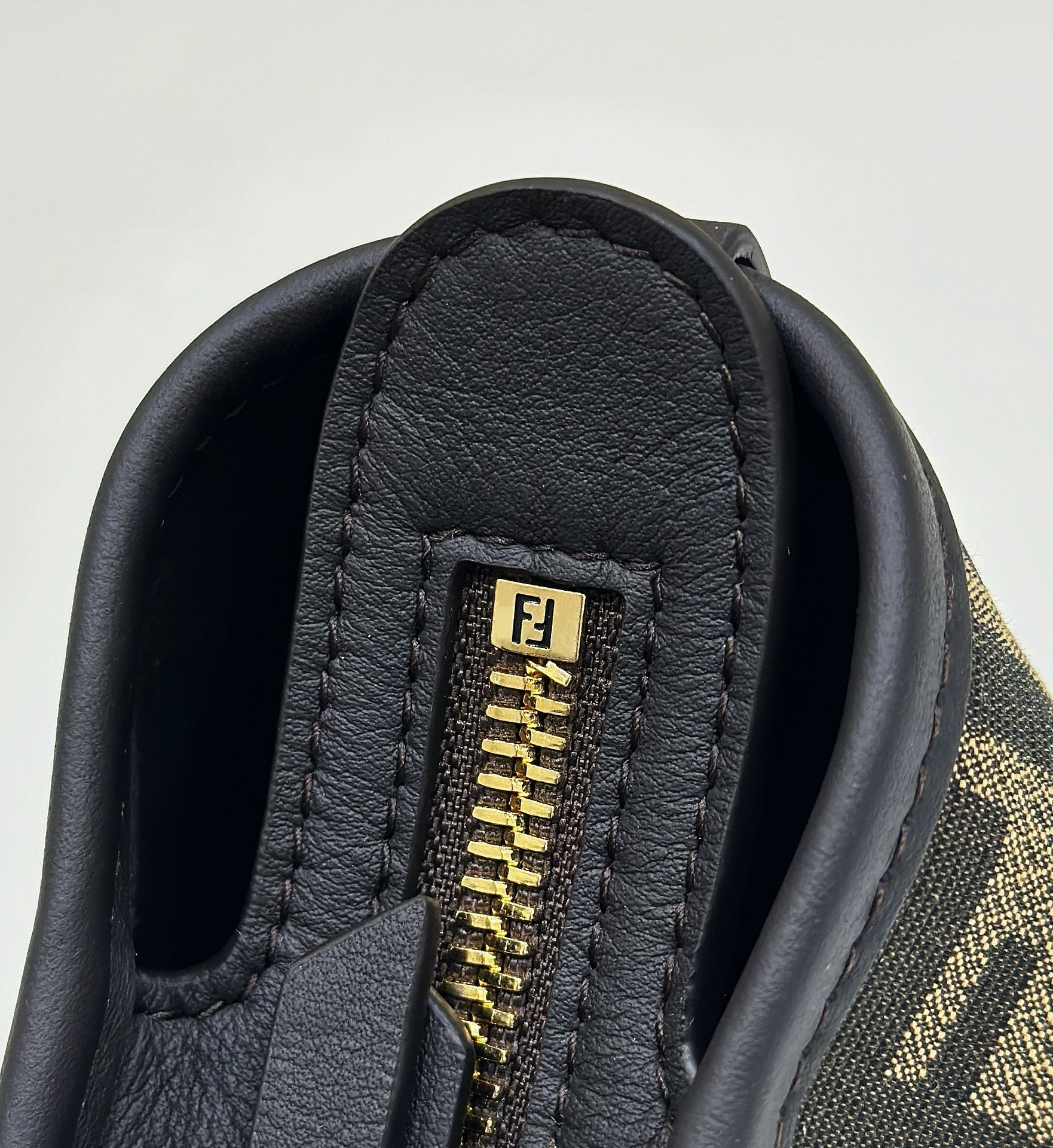 FENDI ORIGAMI MEDIUM 27 BROWN MIX BLACK FF JACQUARD FABRIC BAG