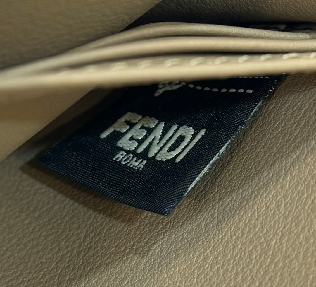 FENDI ROLL 33 TOTE BAG IN PEANUT BROWN MIX WHITE CANVAS