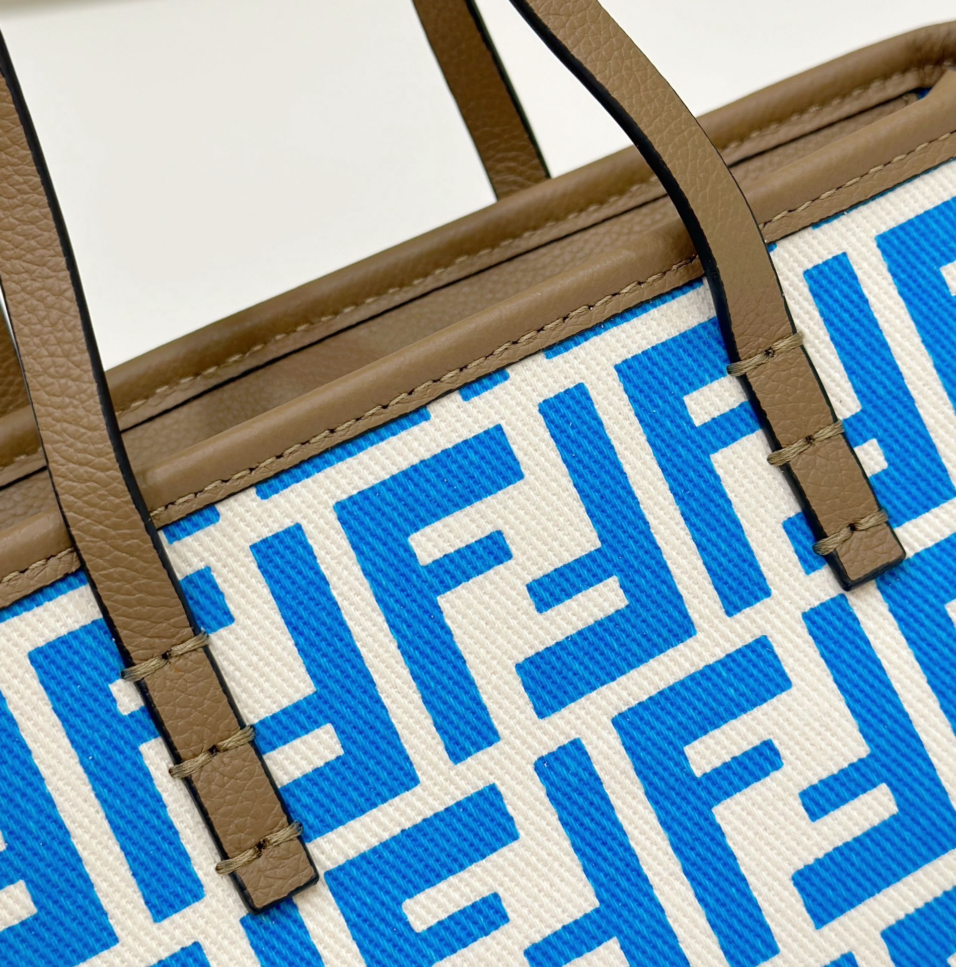 FENDI ROLL 22 TOTE BAG IN MIDNIGHT BLUE MIX WHITE CANVAS