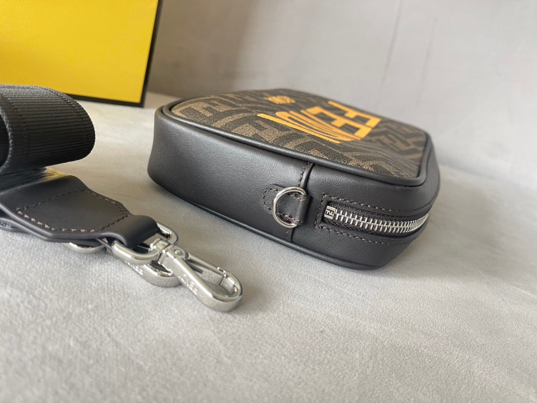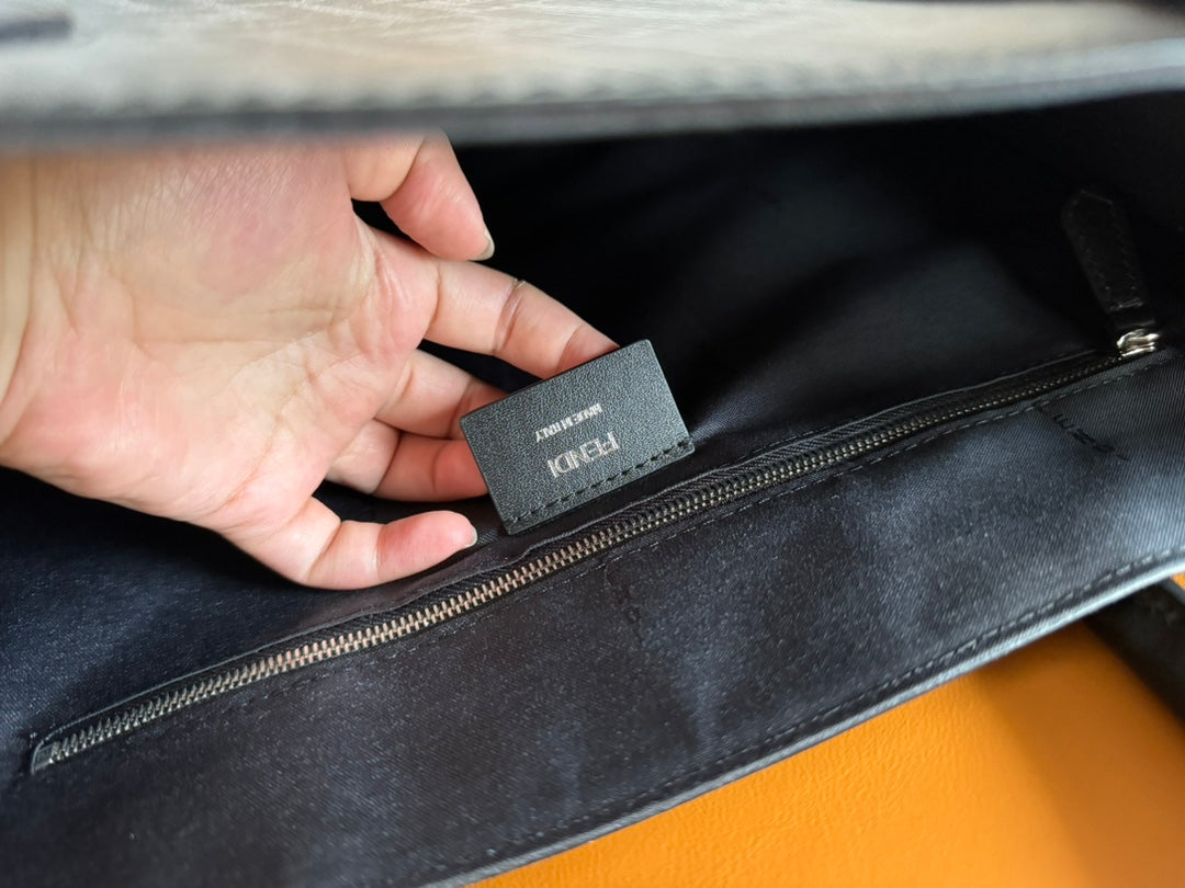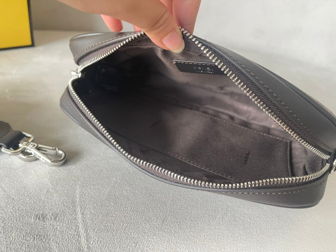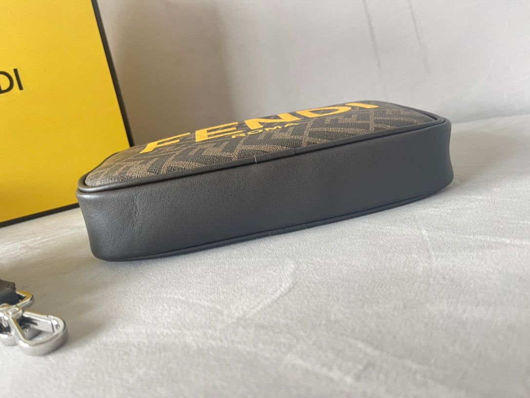 FENDI ROMA 22 CLUTCH BAG IN DARK GREY FF CALFSKIN SILVER HARDWARE WITH WHITE LOGO