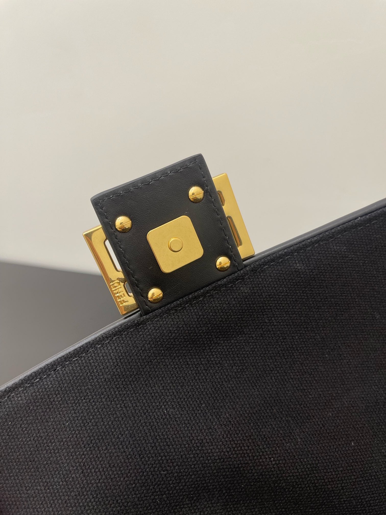 FENDI 19 BAGUETTE BAG IN BLACK MIX WHITE CANVAS WITH GOLD HARDWARE