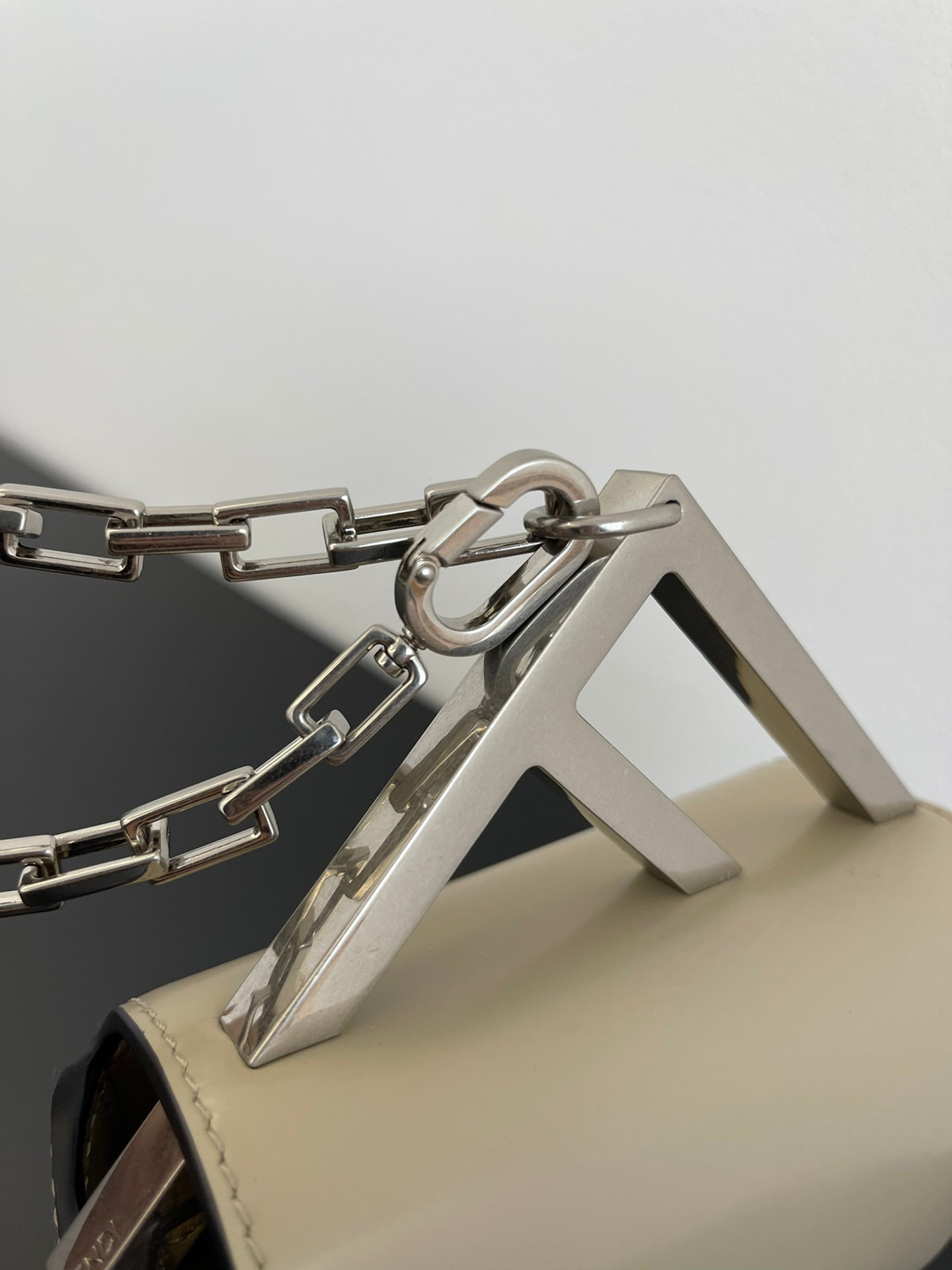 FENDI MINI FIRST SIGHT 23 BAG IN ECRU BROWN CALFSKIN WITH SILVER HARDWARE