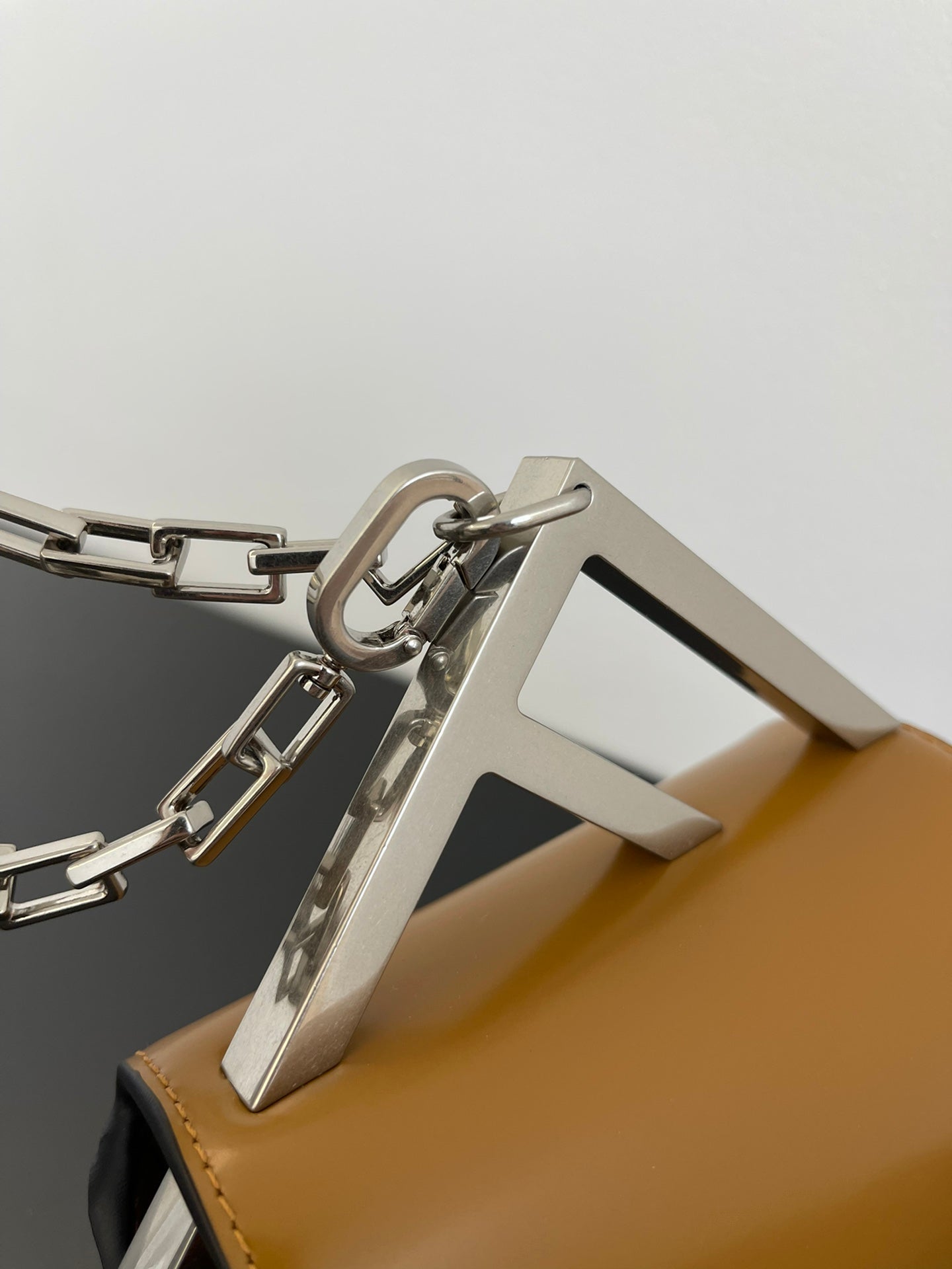 FENDI 27 BAG IN TAN BROWN CALFSKIN WITH GOLD HARDWARE