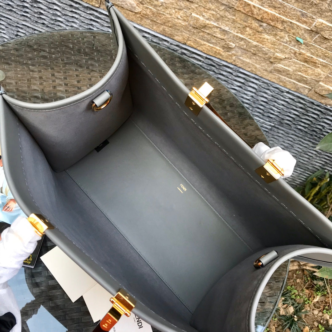 Fend Sunshine Large Bag 40.5 Grey Leather
