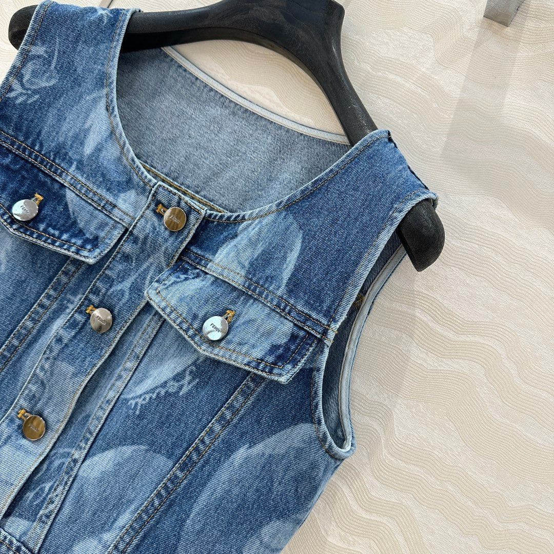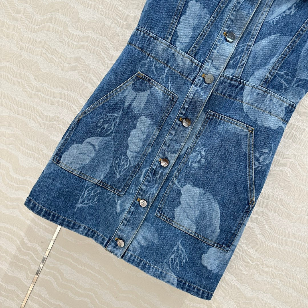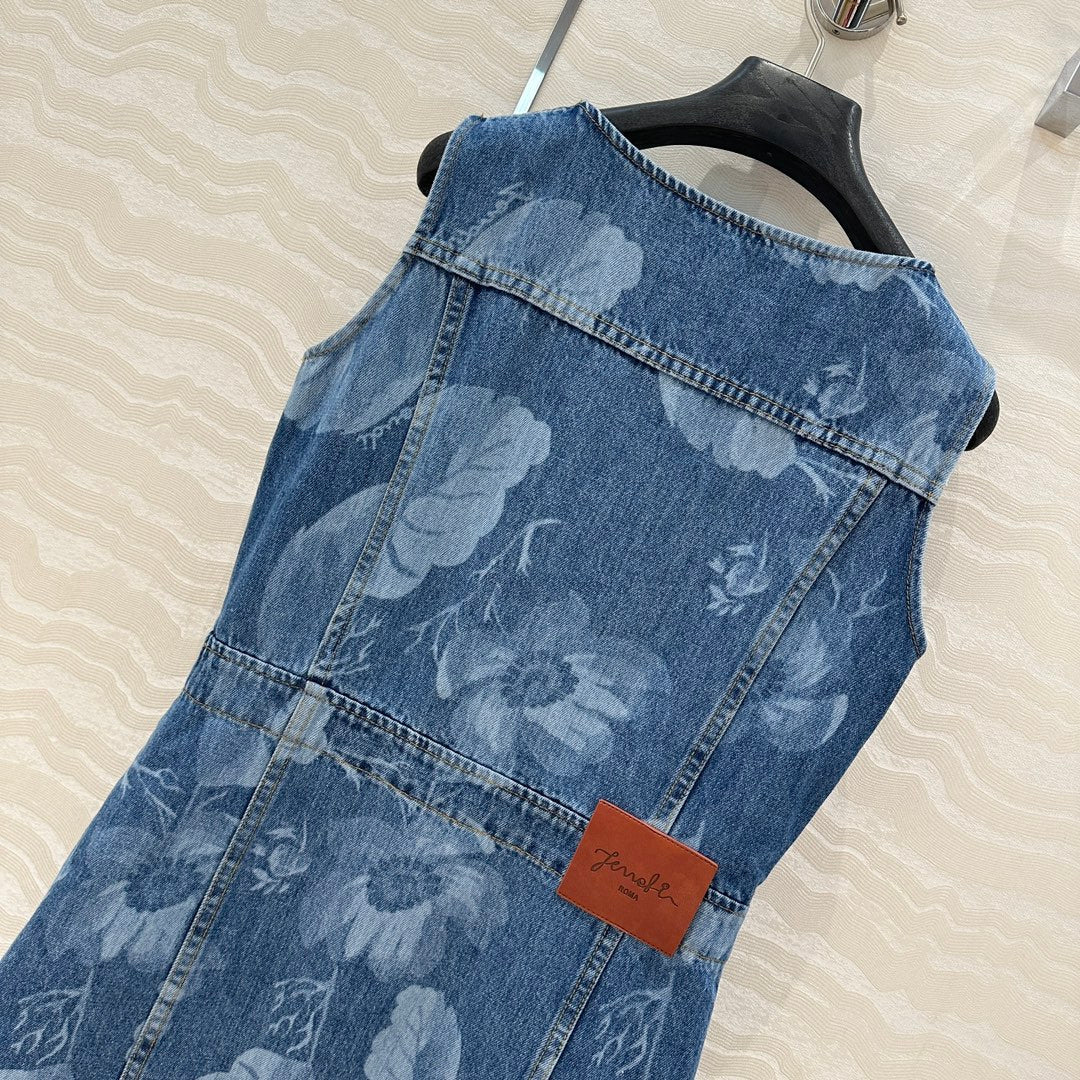 Fendi Flower Vest Dress Blue cotton