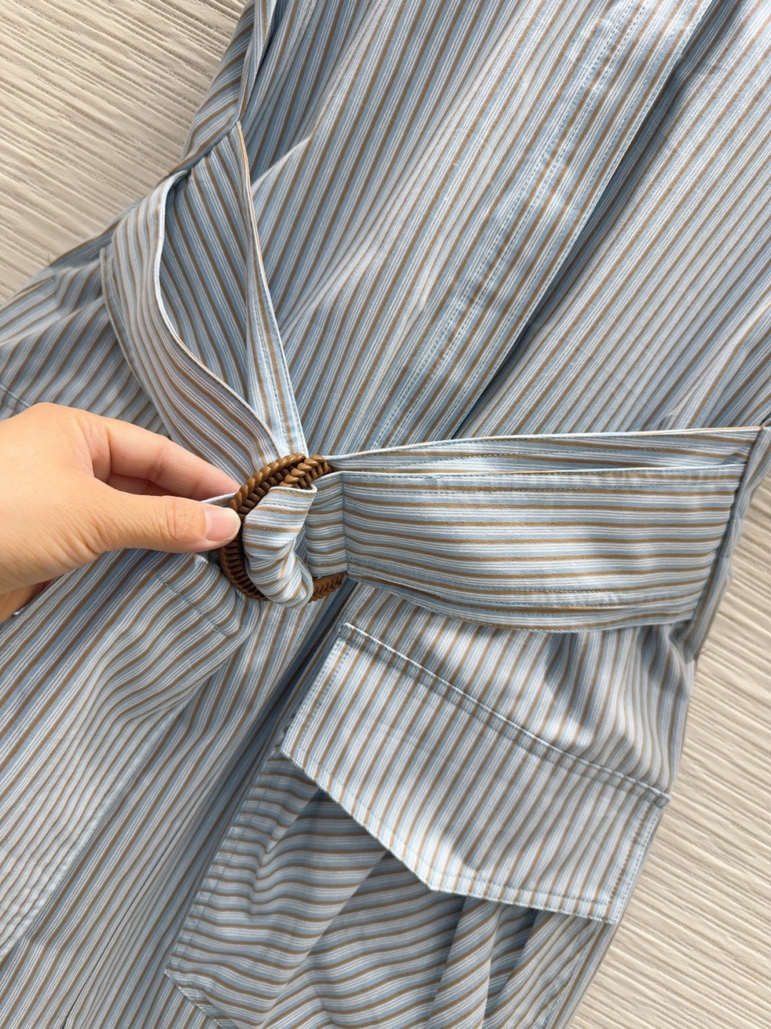 Fendi 25 Letter Logo Embroidered Striped Suit Blue Cotton