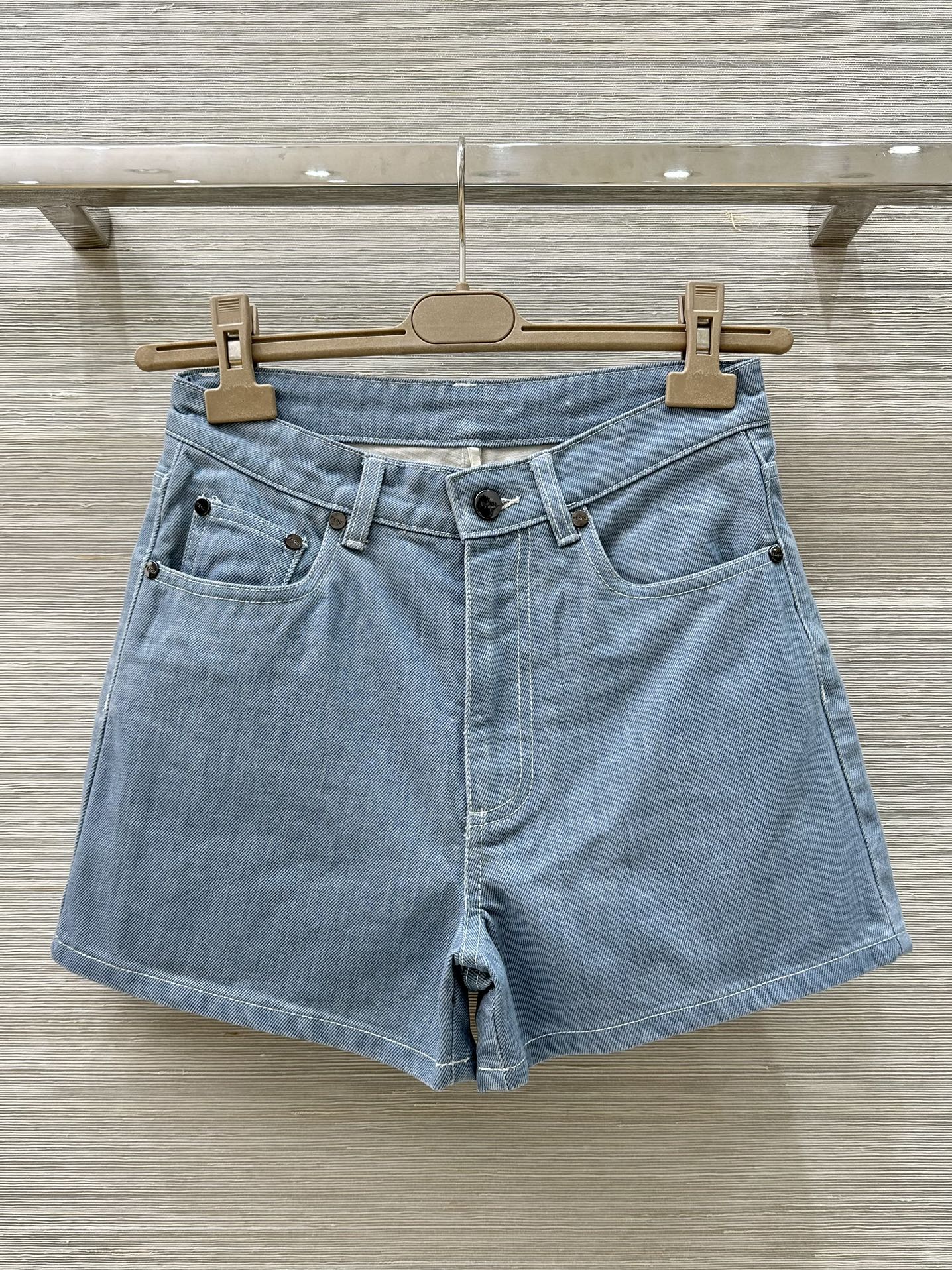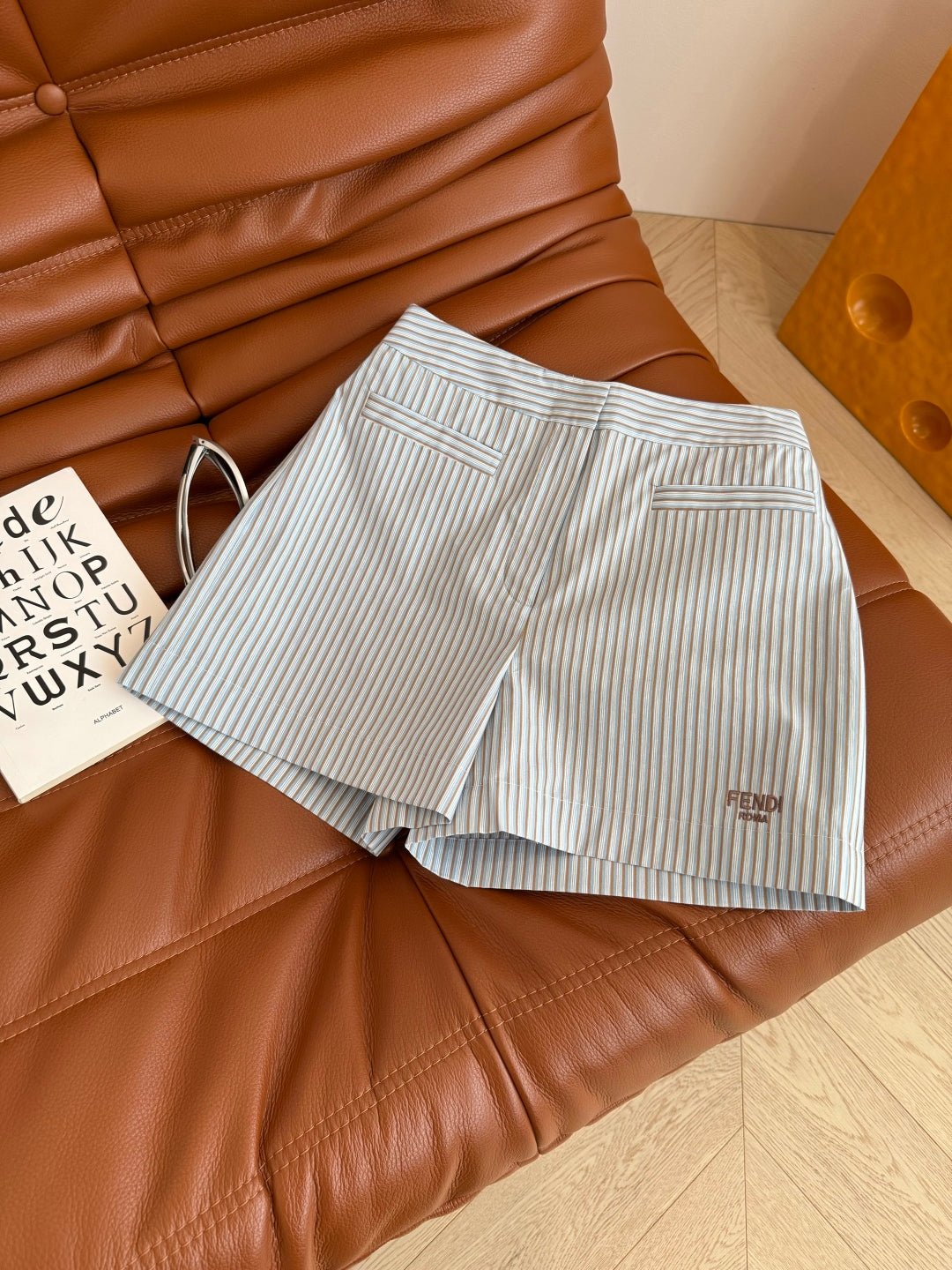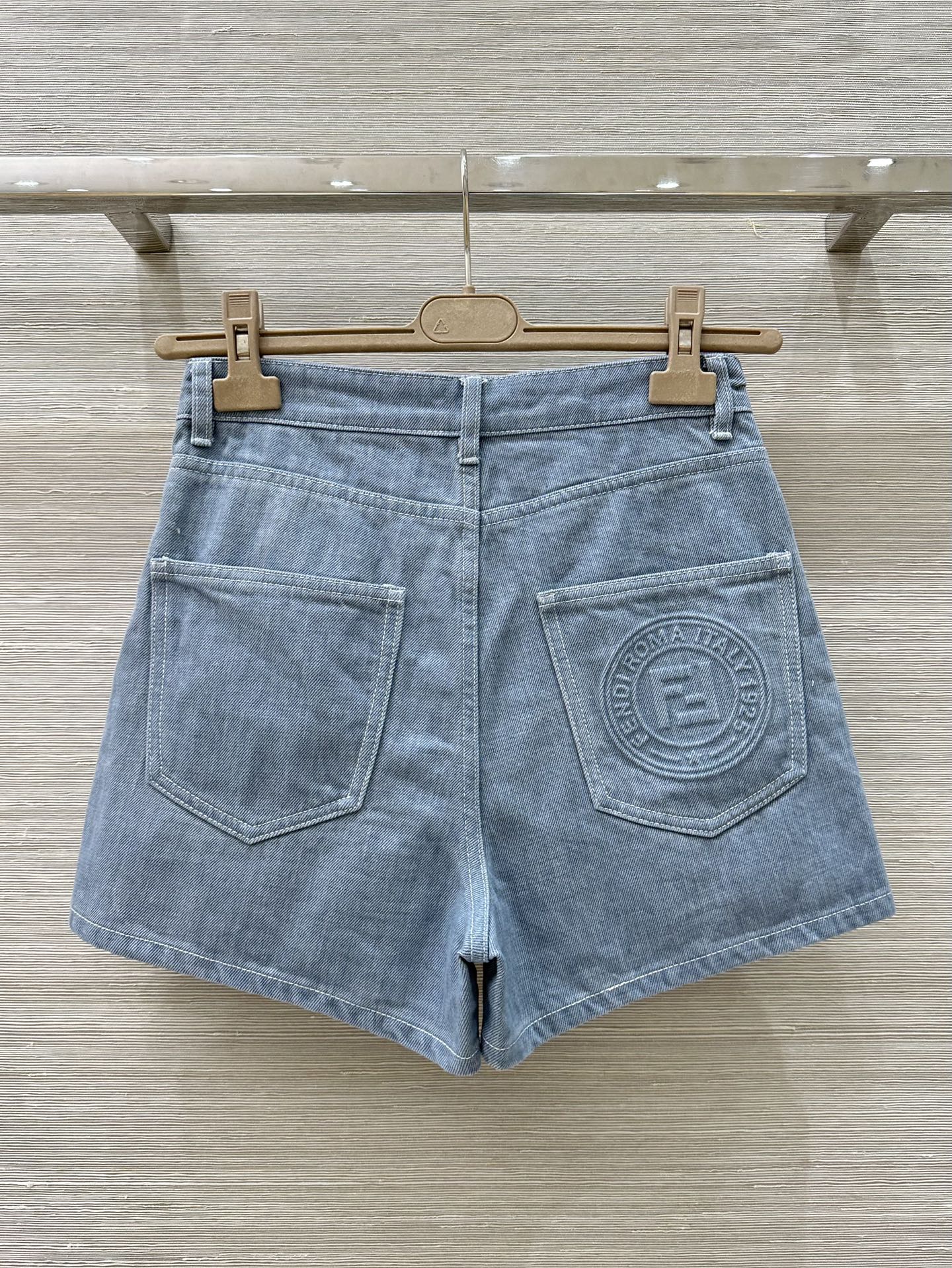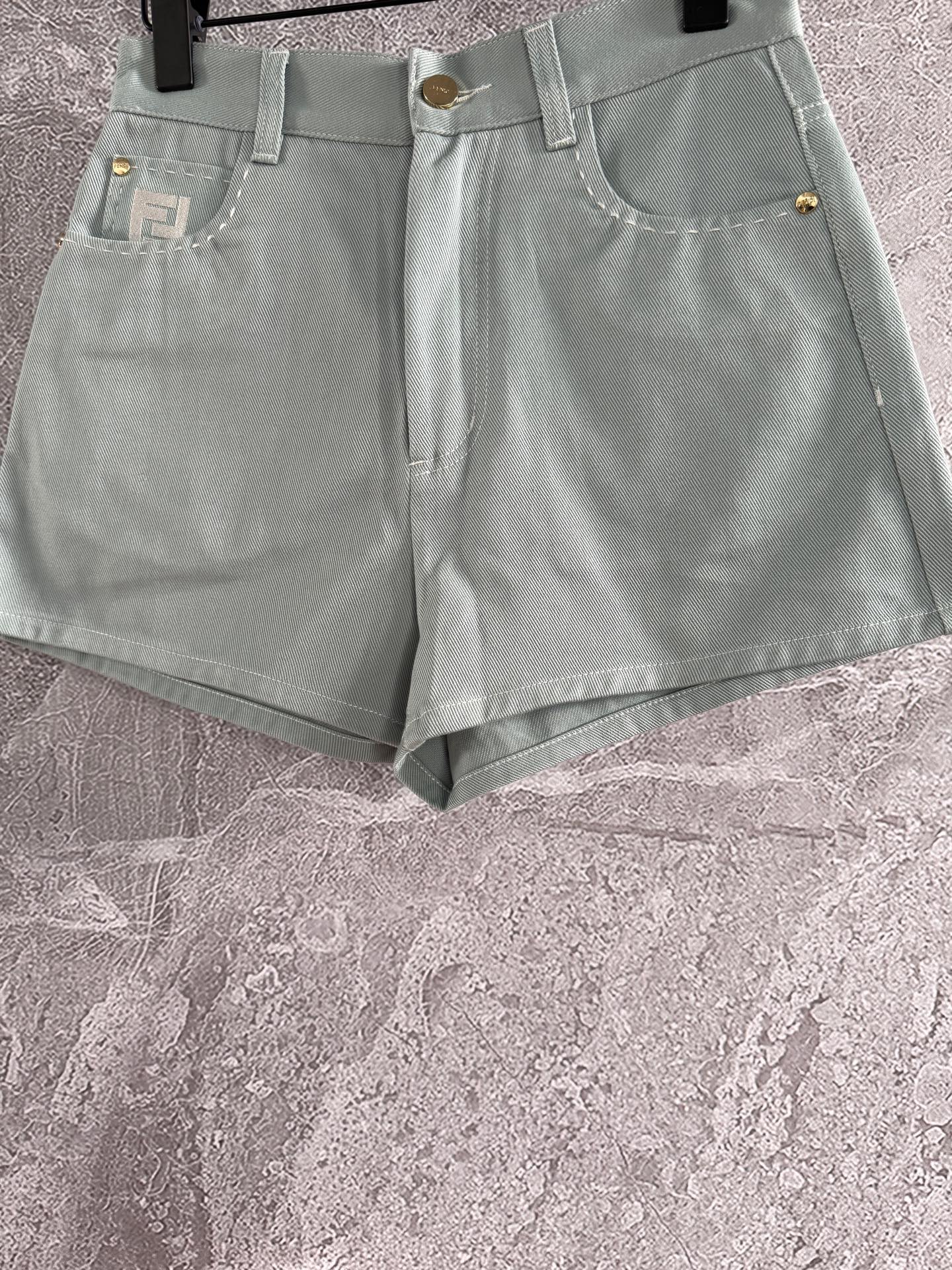 Fendi Hand-made Needle-picking Shorts Blue Green Cotton