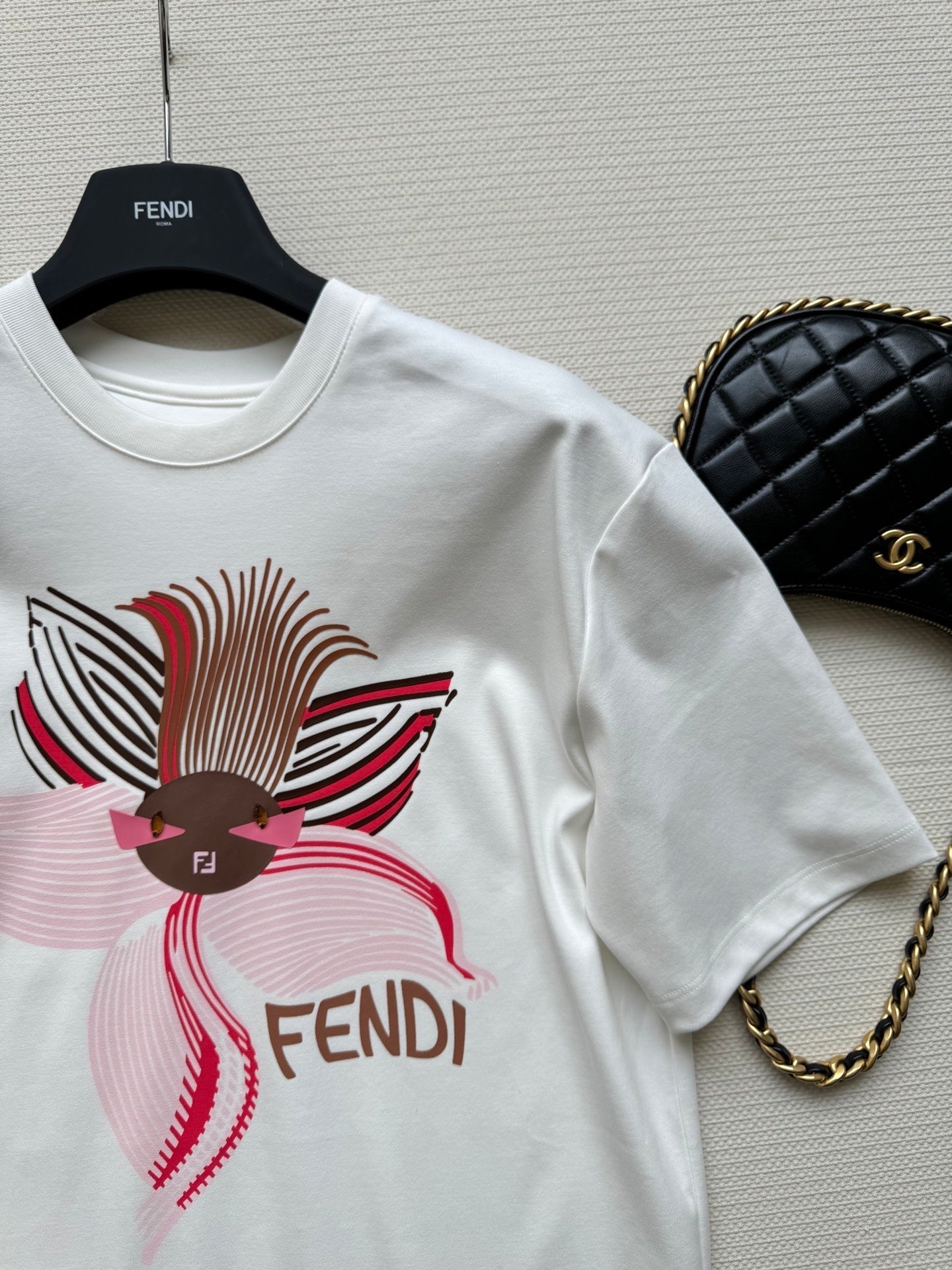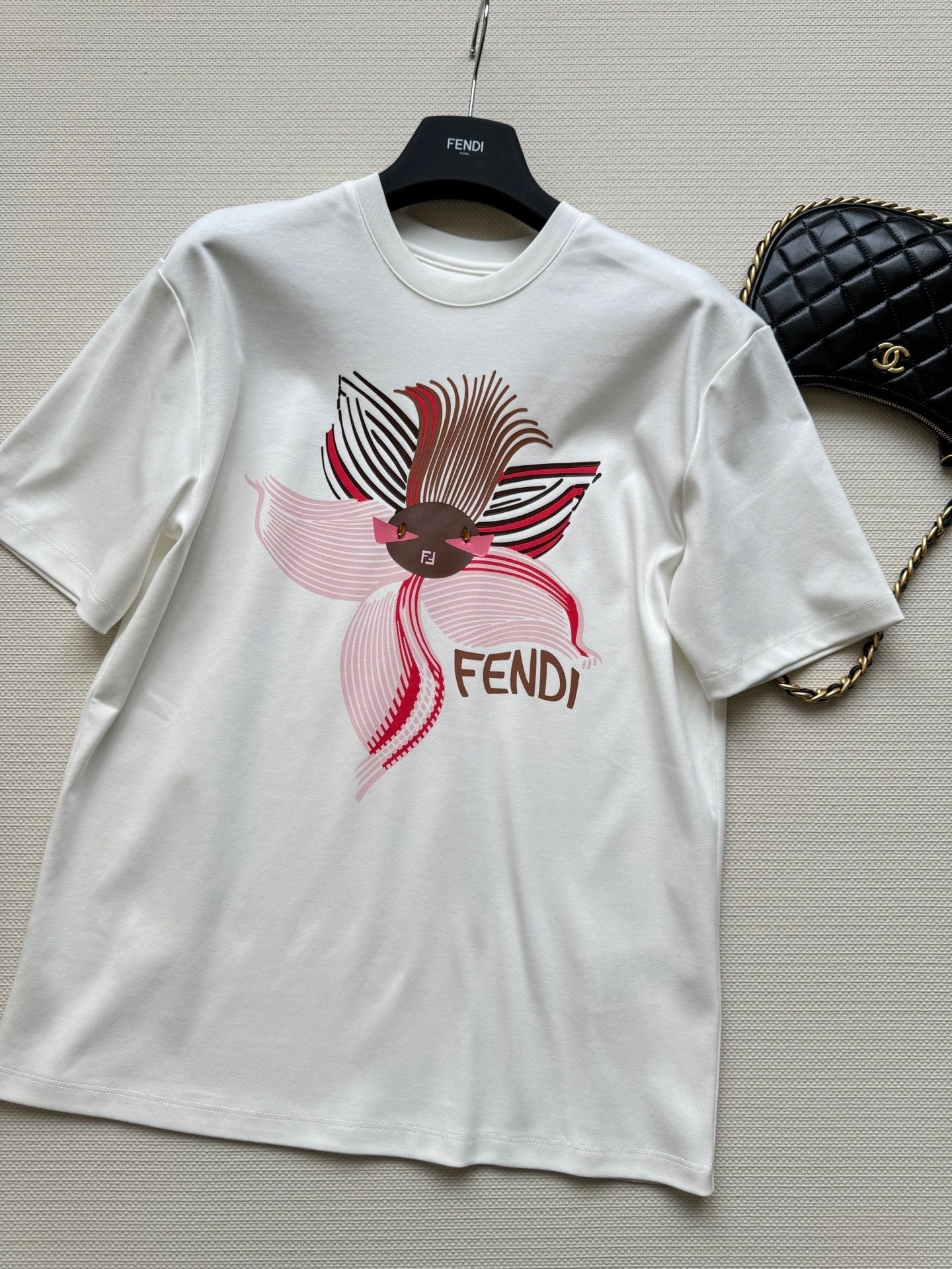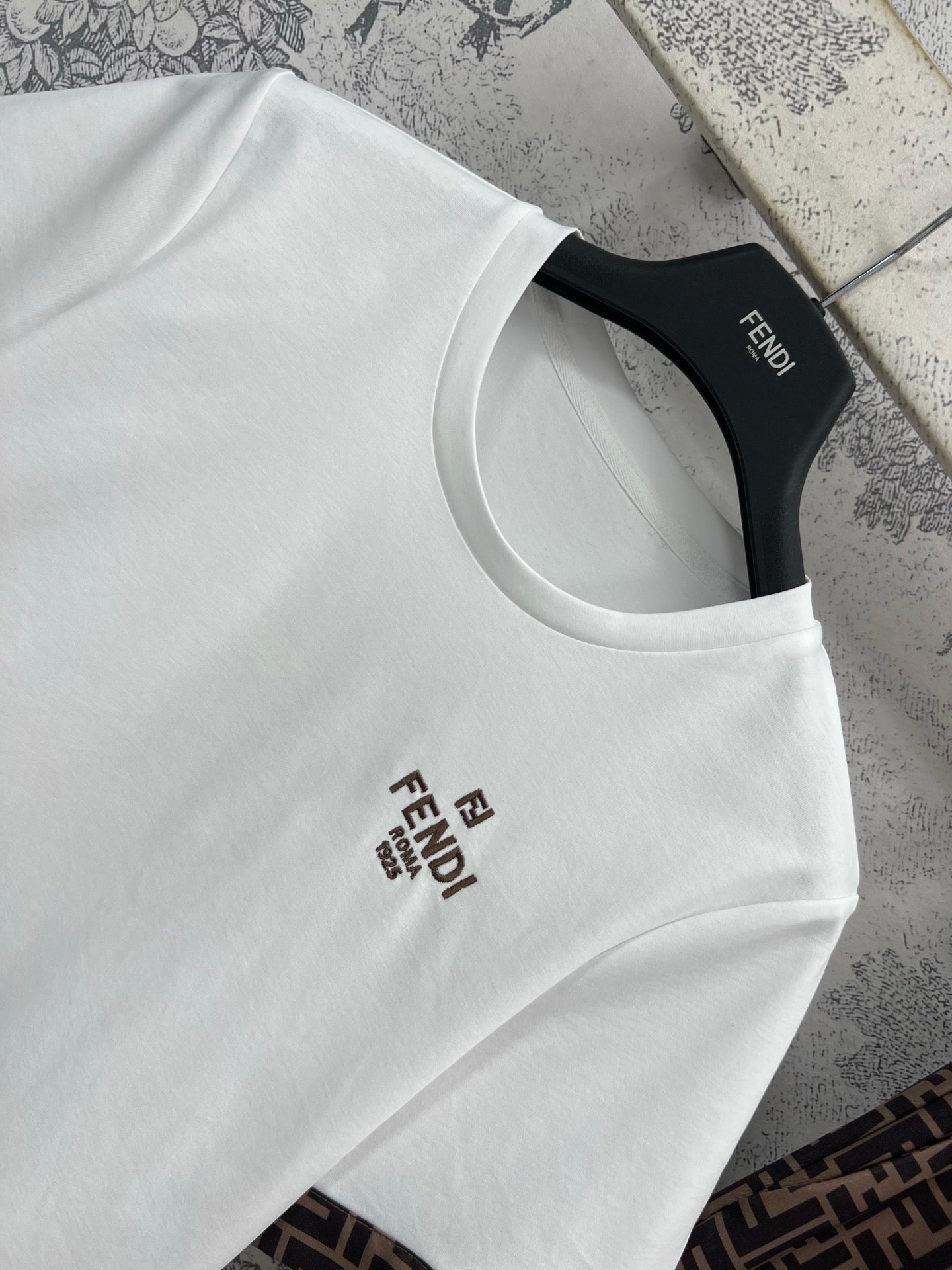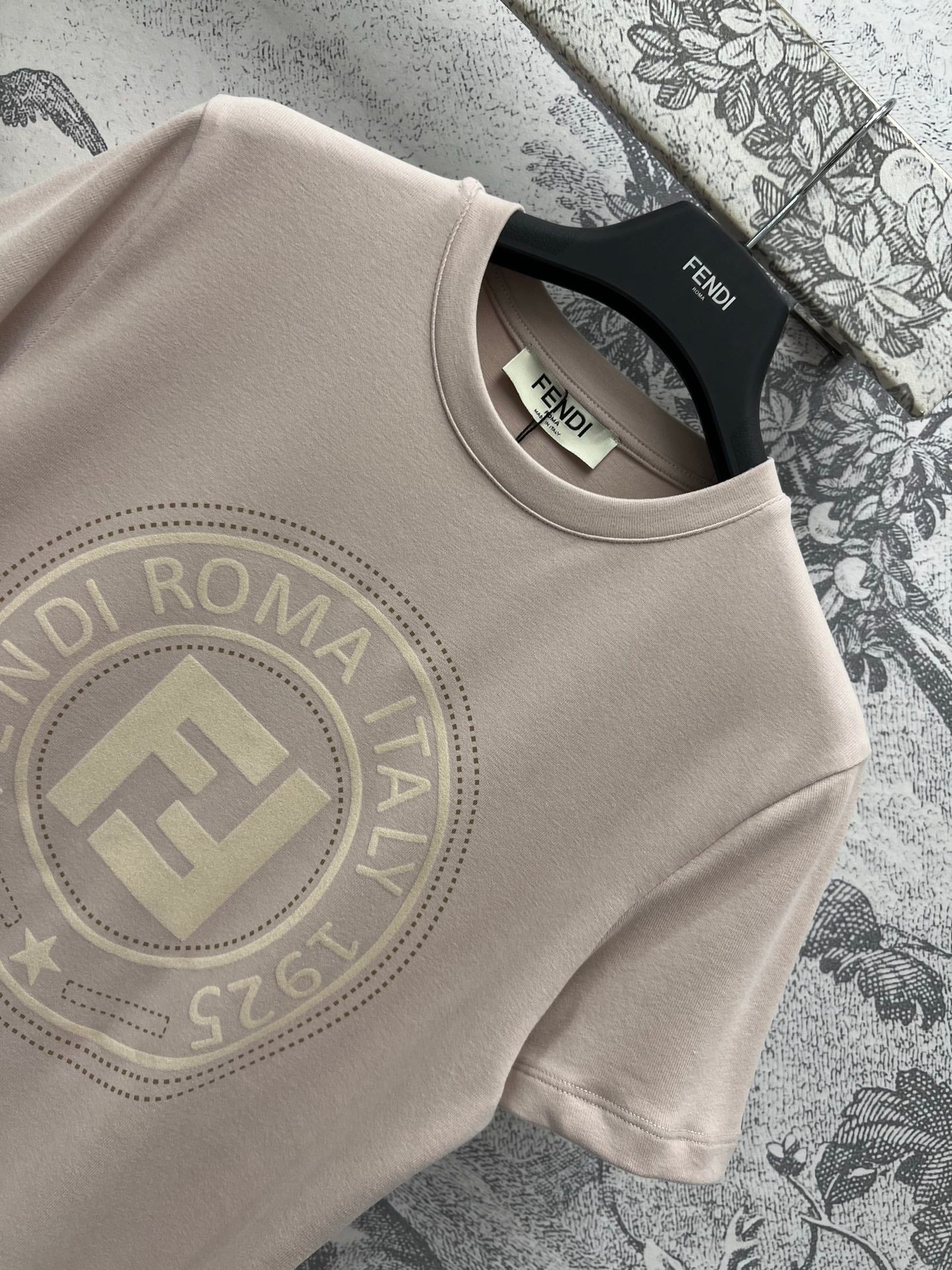 Fendi 25 Embossed Letter T-shirt Ice blue Cotton
