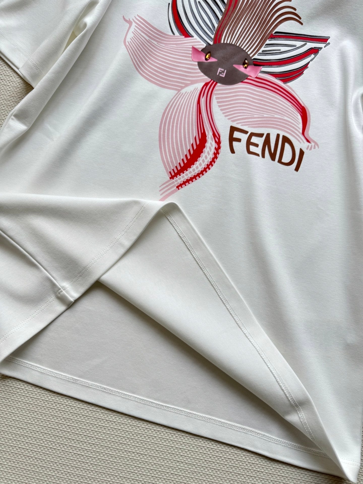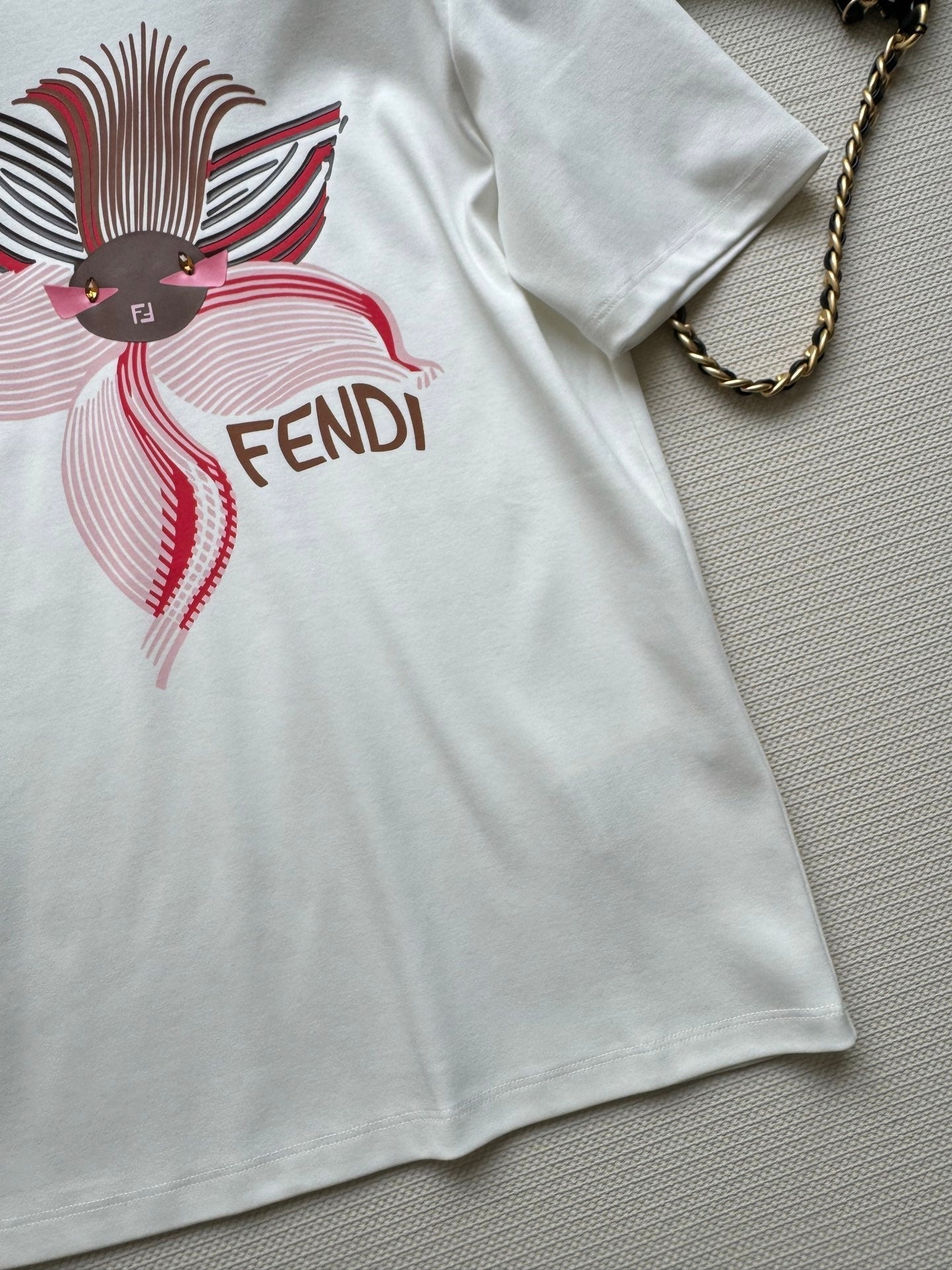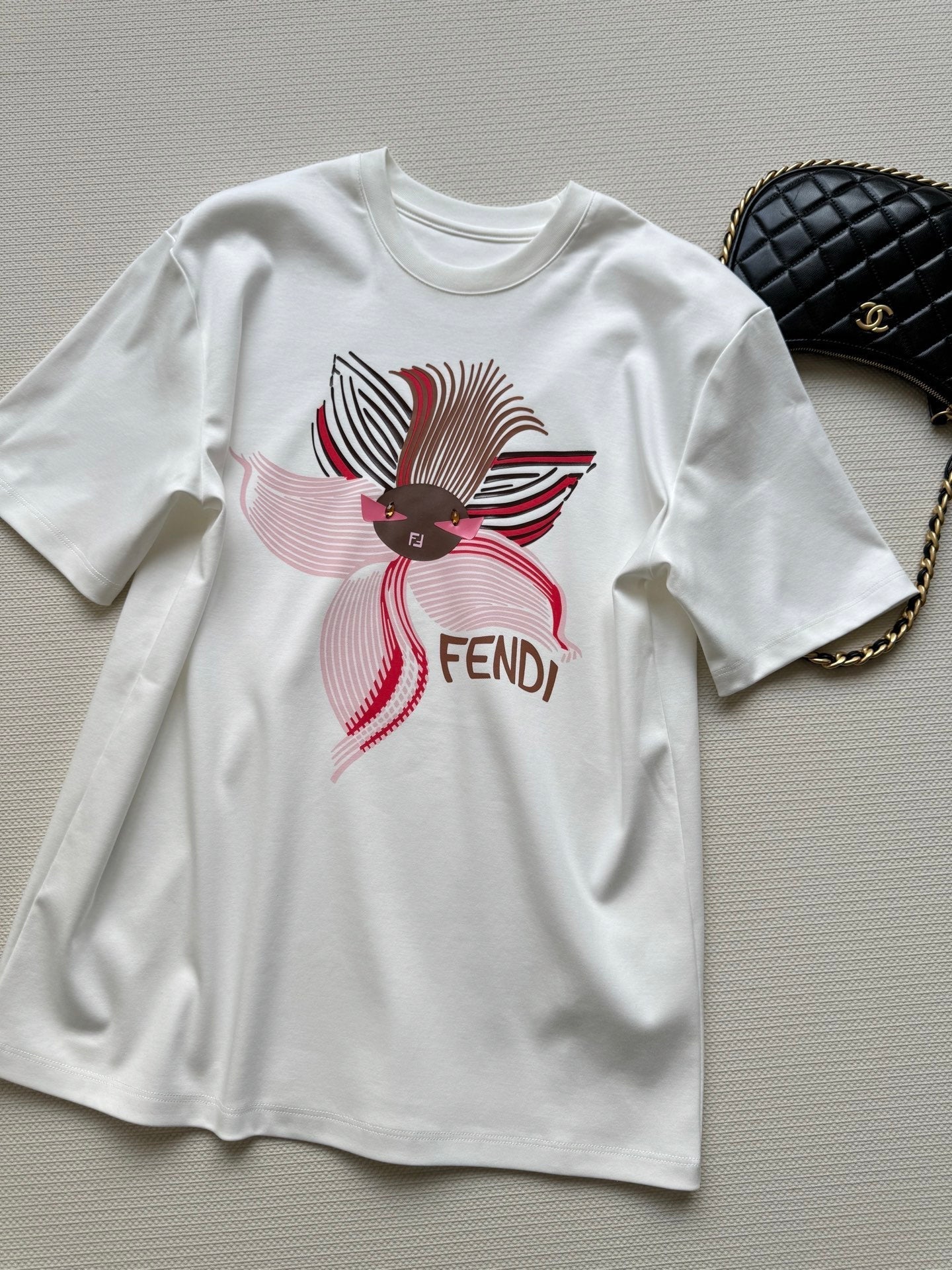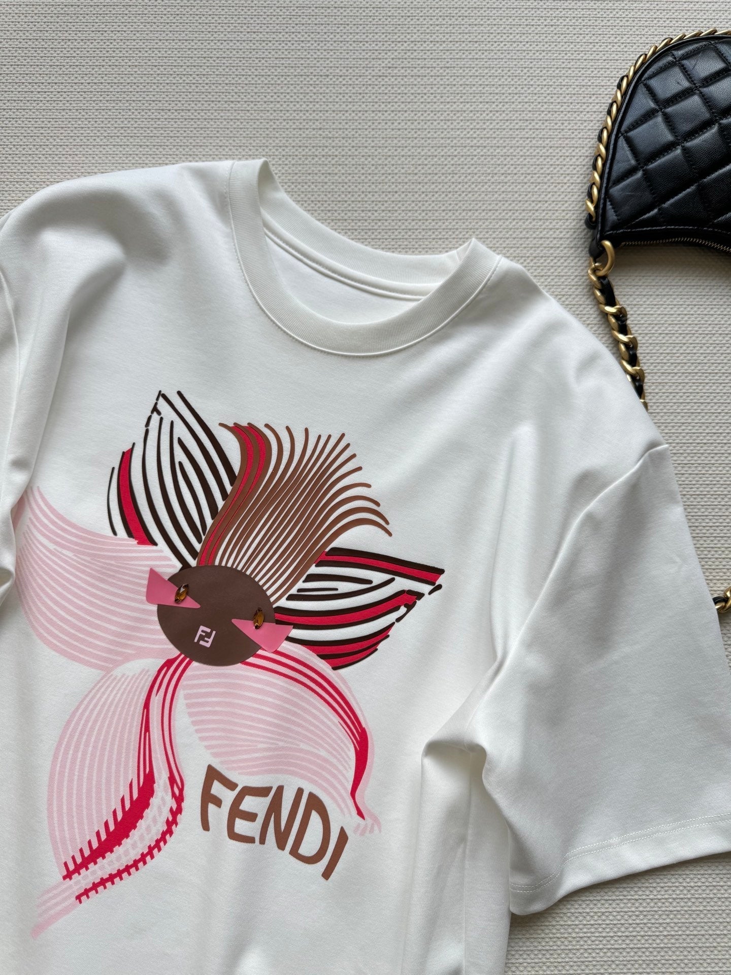 Fendi 25 Embossed Letter T-shirt Ice blue Cotton