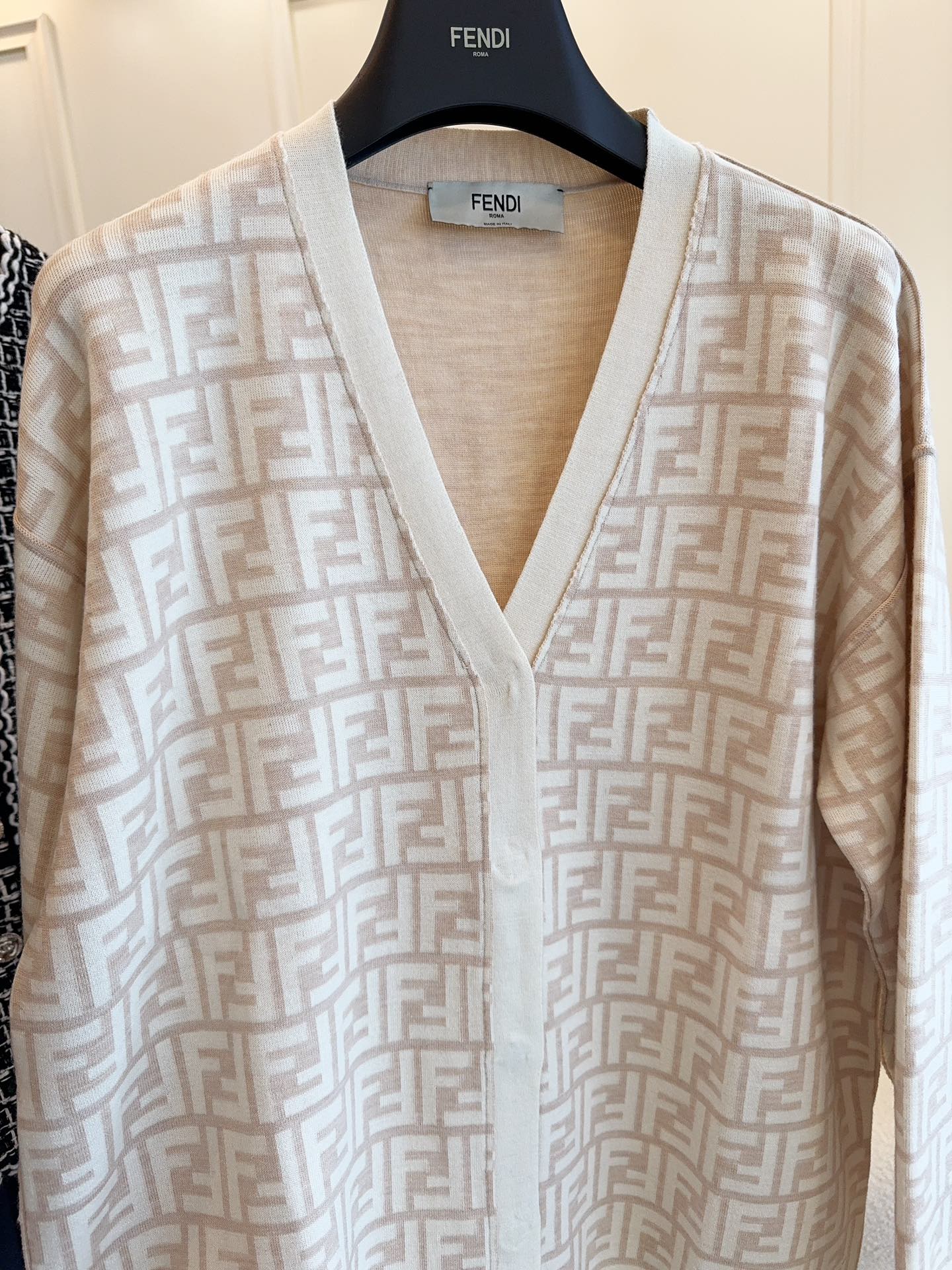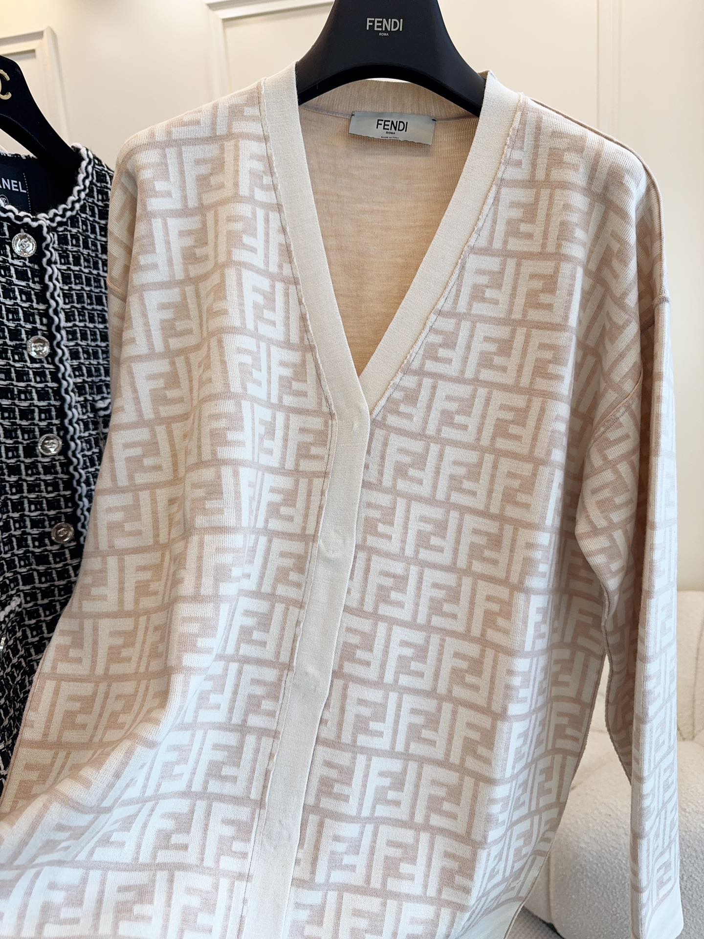 Fendi 2025 V-neck Cardigan Cherry Pink Wool