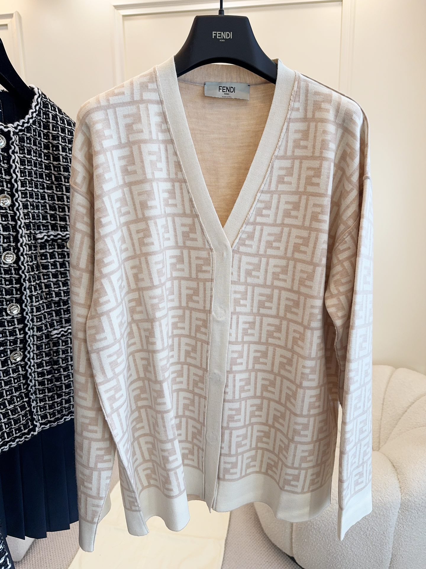 Fendi 2025 V-neck Cardigan Ligth Blue Wool