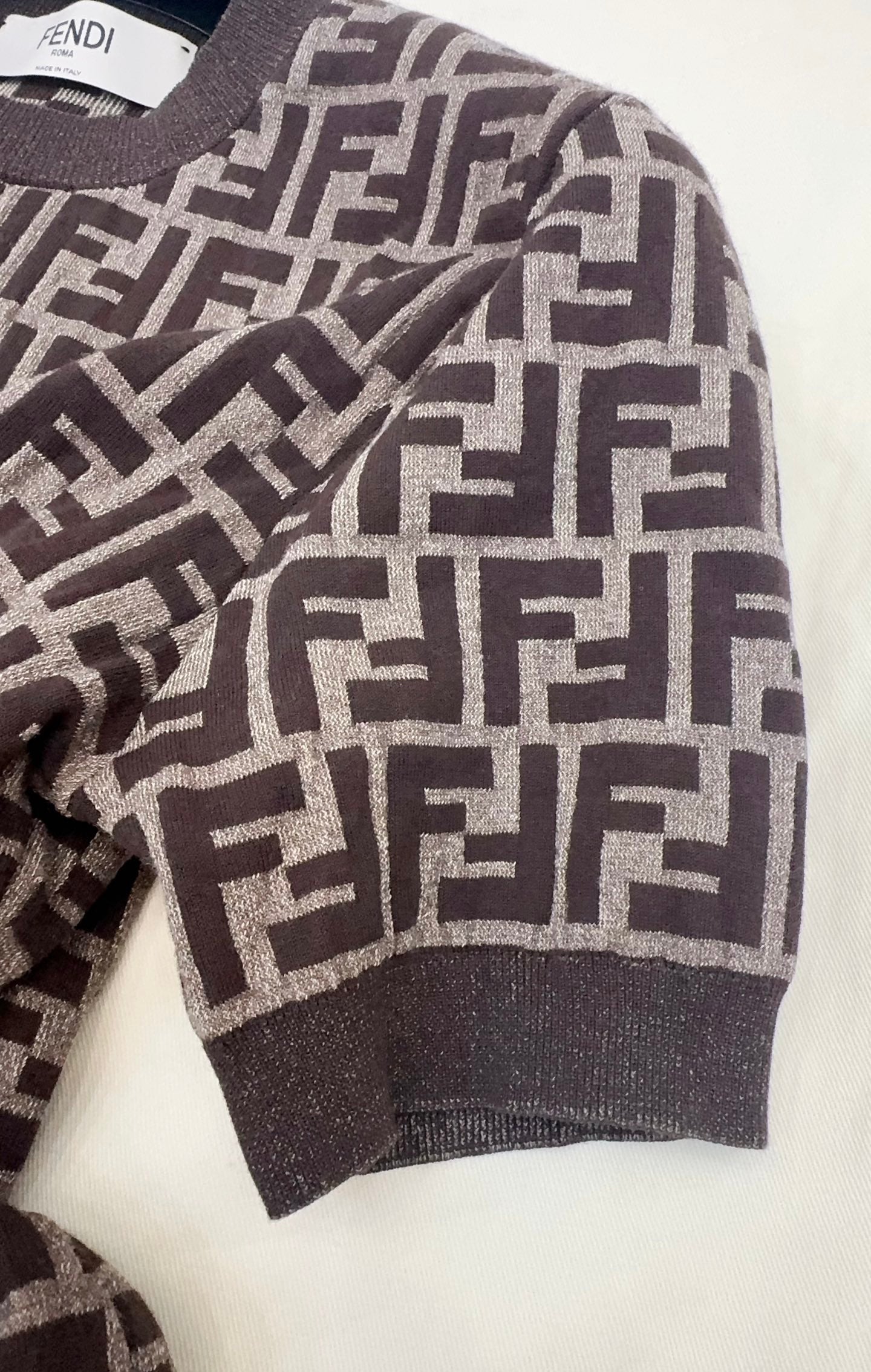 Fendi 25 Knitted Round Neck Short Sleeves Gray Wool F155