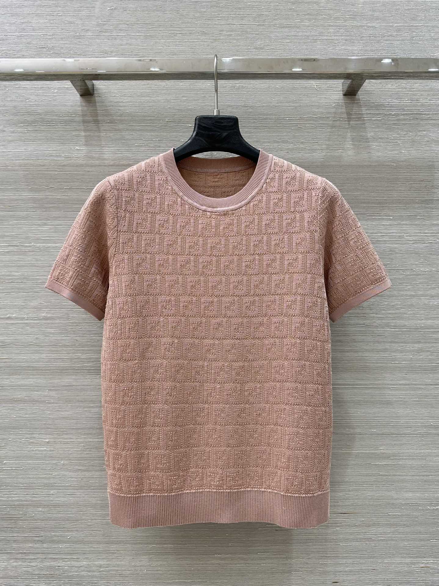 Fendi 25 Short-sleeved Knitted T-shirt Brown Cotton