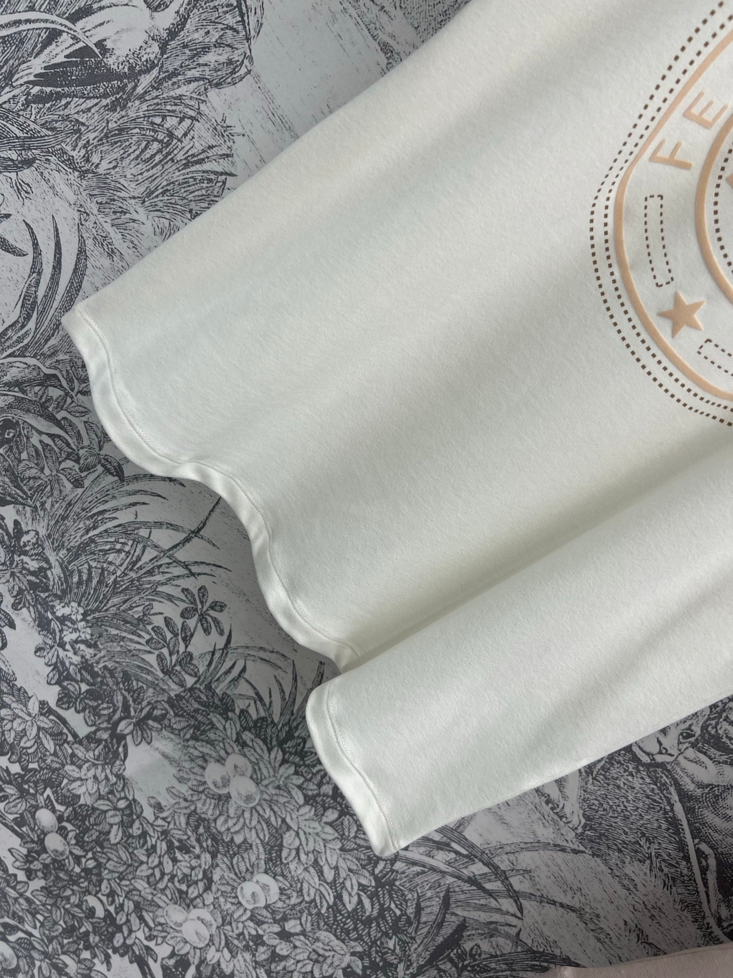 Fendi 25 Letter Hollow Knitted Short Sleeves top White Silk Cotton