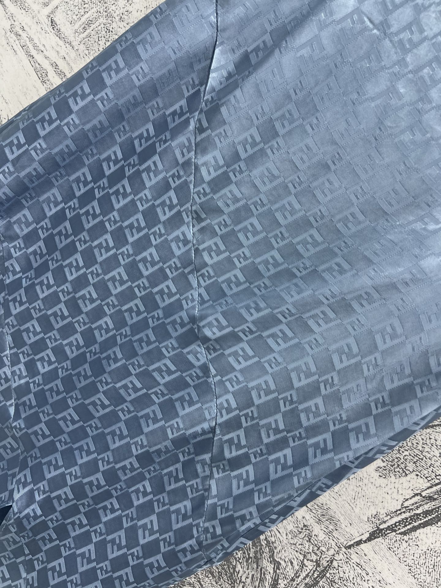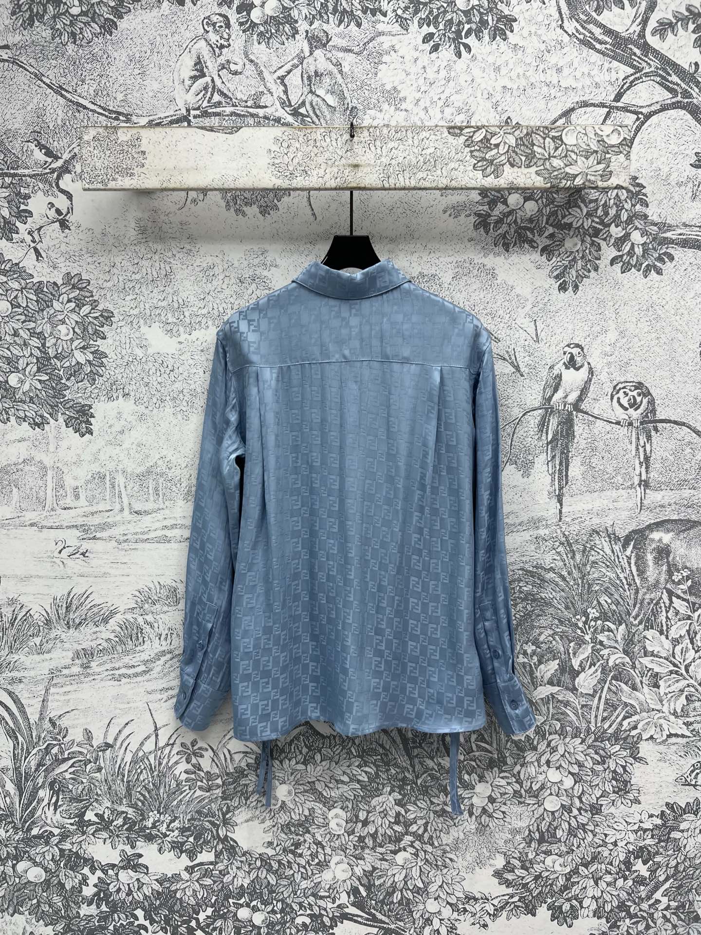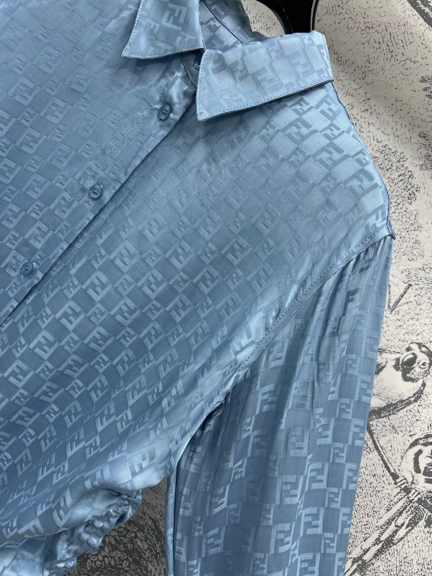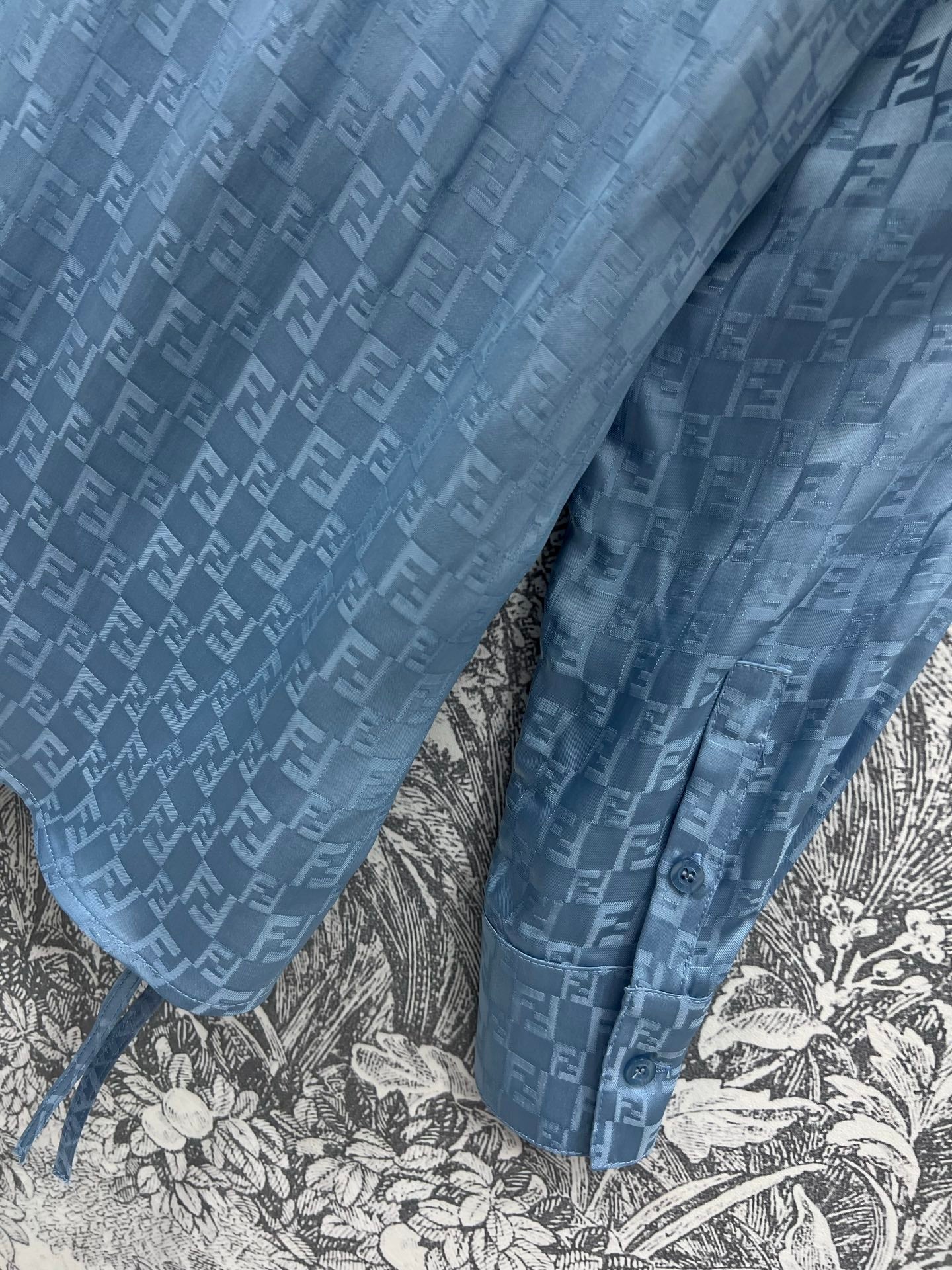 Fendi 25 Double F Shirt Blue Viscose Polyester