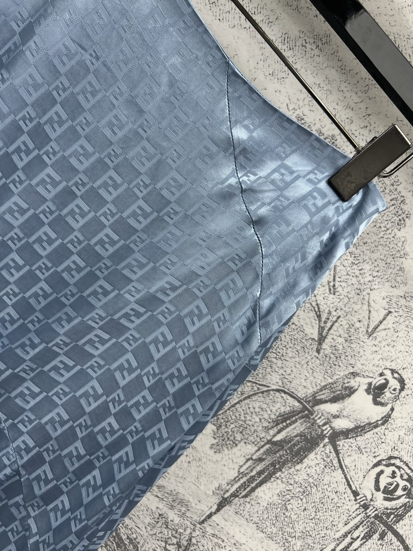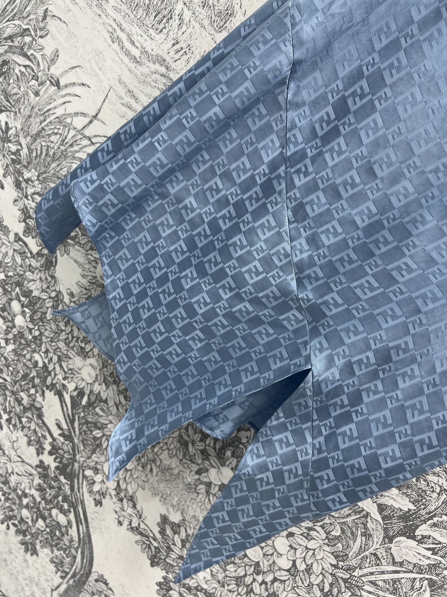 Fendi 25 Double F Irregular Skirt Blue Viscose Polyester
