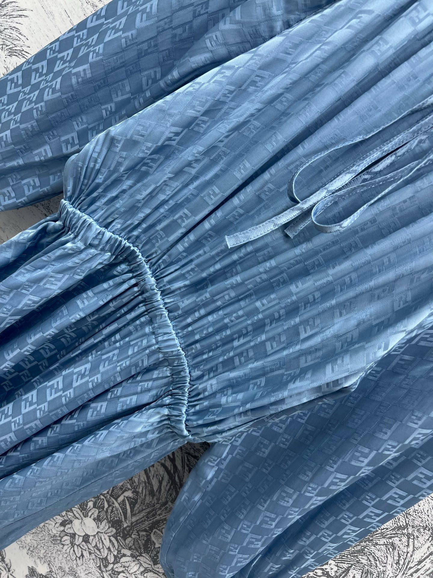Fendi 25 Long Sleeve Dress Blue Viscose Polyester