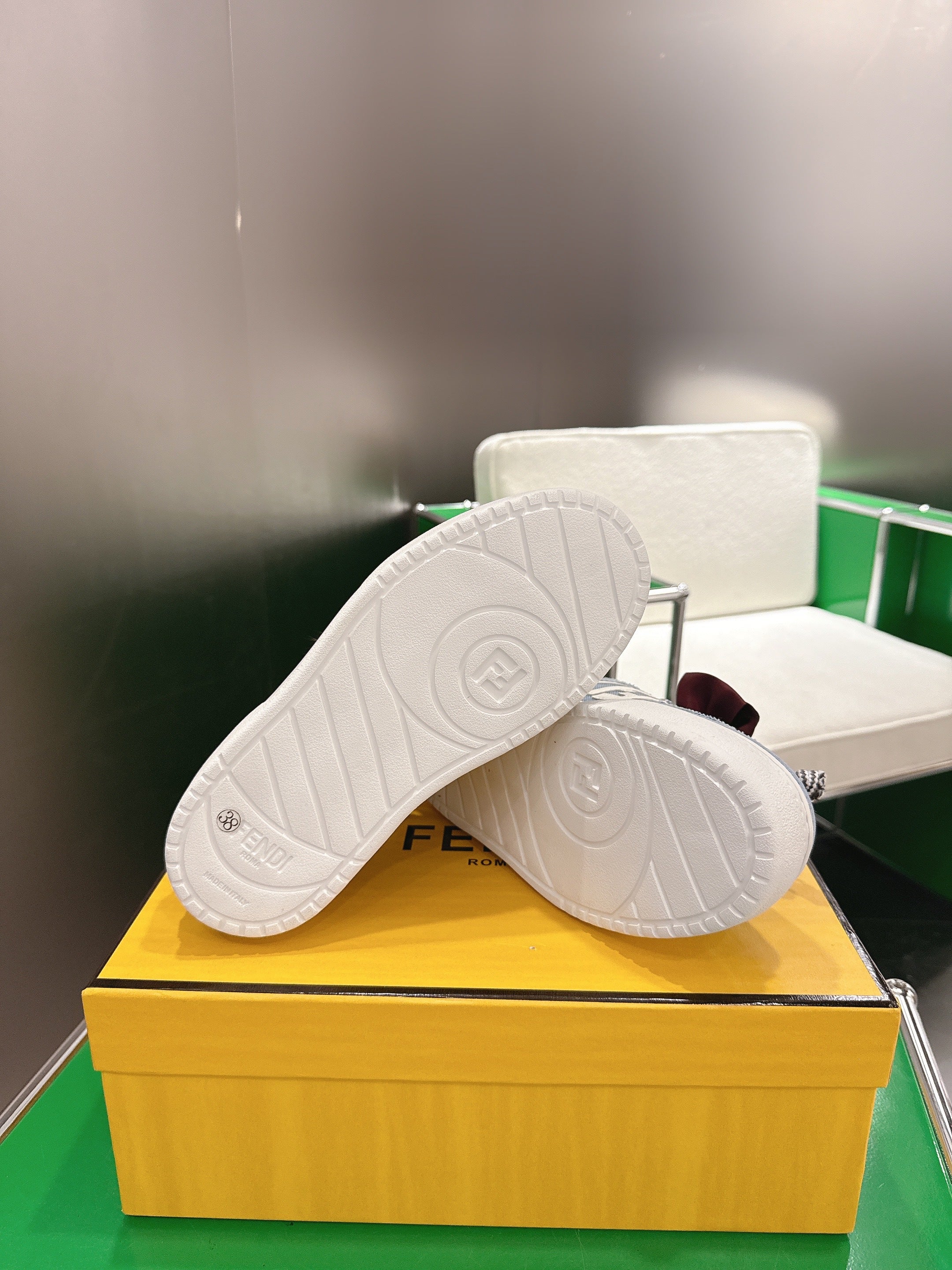 Fendi 2025 Match Platform Sneakers Blue White Denim Fabric 562577