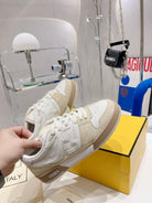 FENDI CASUAL SNEAKER IN WHITE CALFSKIN AND TAN BROWN SUEDE