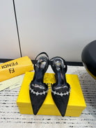 FENDI CRYSTAL HIGH-HEELED SLINGBACK 7 CM IN BLACK SUEDE