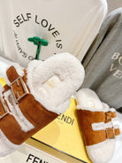 FENDI DAD SANDAL MULE IN BRONZE BROWN SUEDE WITH WHITE FLEECE