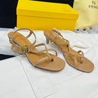 FENDI FFOLD MEDIUM-HEELED 55 MM SANDALS IN BRONZE BROWN LAMBSKIN WITH GOLD HARDWARE