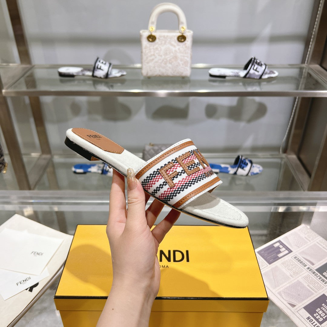 FF Women Roma Signature White Grey Canvas Leather Slide