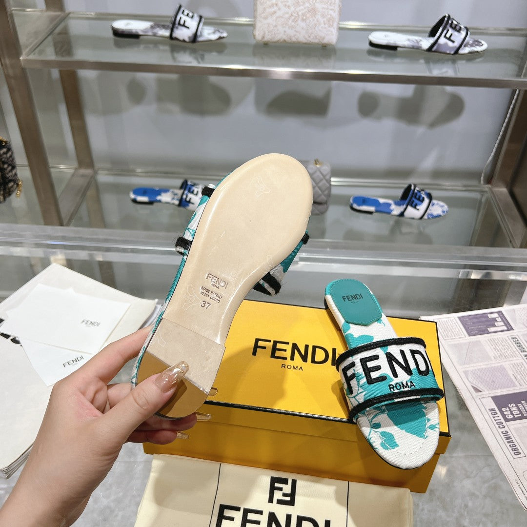 FF Women Roma Signature Blue Grey Canvas Leather Slide